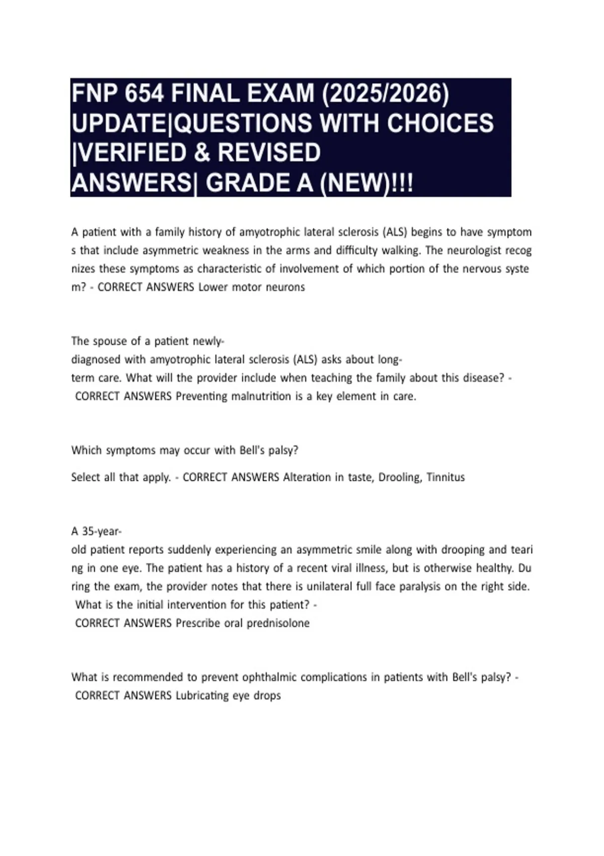 FNP 654 FINAL EXAM (2025/2026) UPDATE|QUESTIONS WITH CHOICES |VERIFIED & REVISED ANSWERS| GRADE A (NEW)!!!