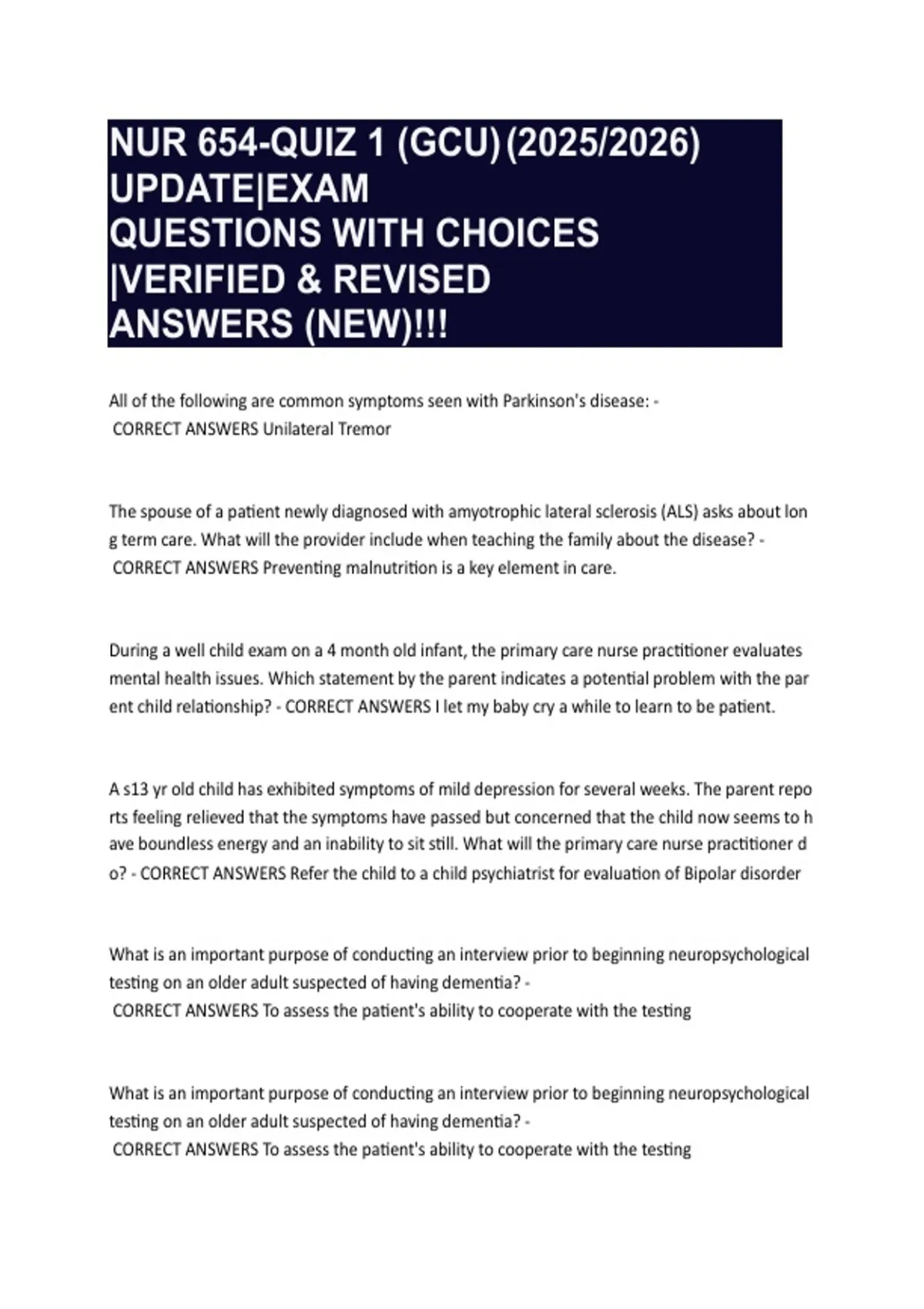 NUR 654-QUIZ 1 (GCU) (2025/2026) UPDATE|EXAM QUESTIONS WITH CHOICES |VERIFIED & REVISED ANSWERS (NEW)!!!
