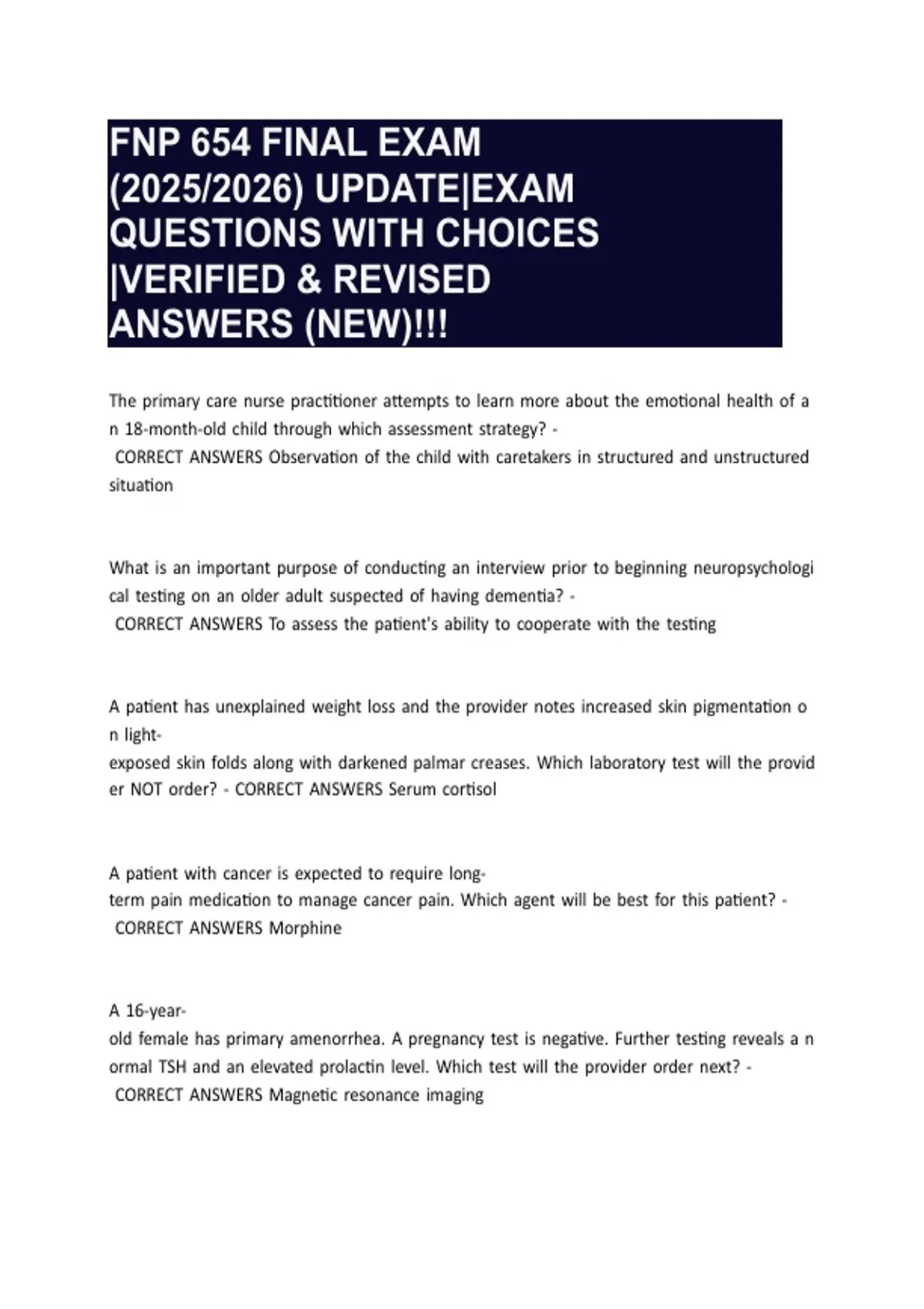 FNP 654 FINAL EXAM (2025/2026) UPDATE|EXAM QUESTIONS WITH CHOICES |VERIFIED & REVISED ANSWERS (NEW)!!!