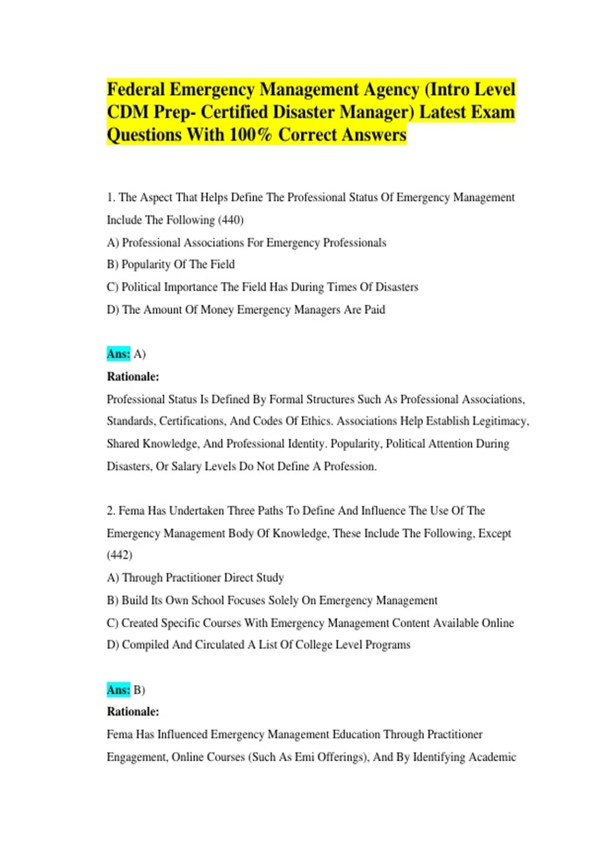 CDM Prep- Certified Disaster Manager) Latest Exam