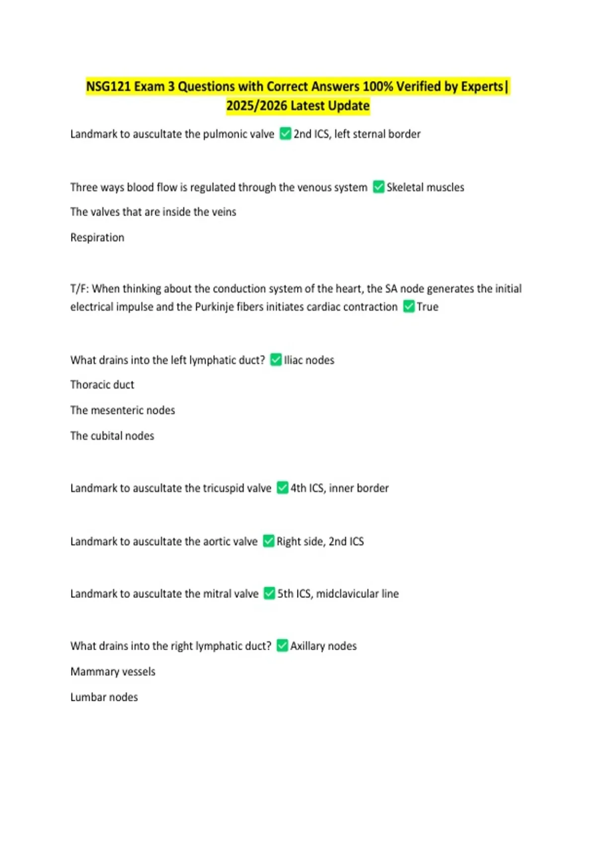 NSG121 Exam 3 Questions with Correct Answers 100% Verified by Experts|