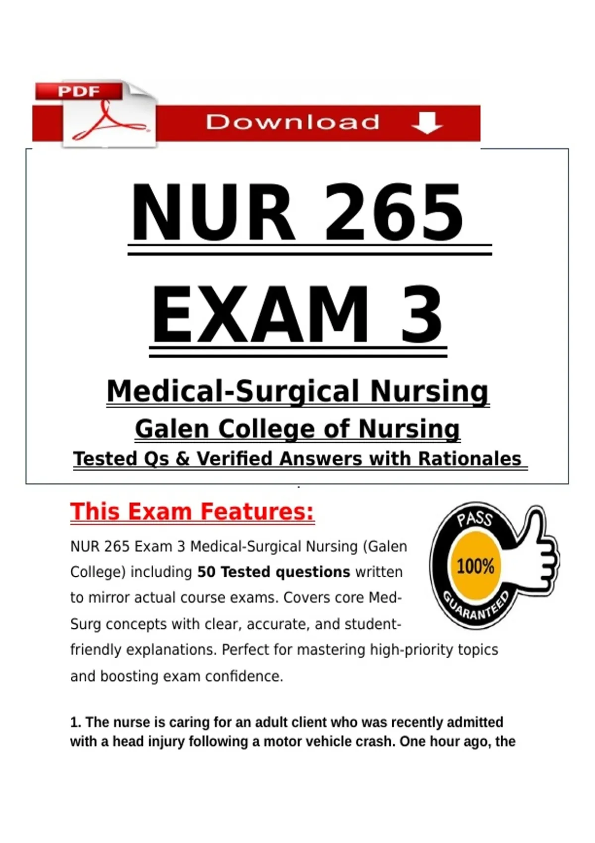 NUR 265 Exam 3 Medical-Surgical Nursing (Galen