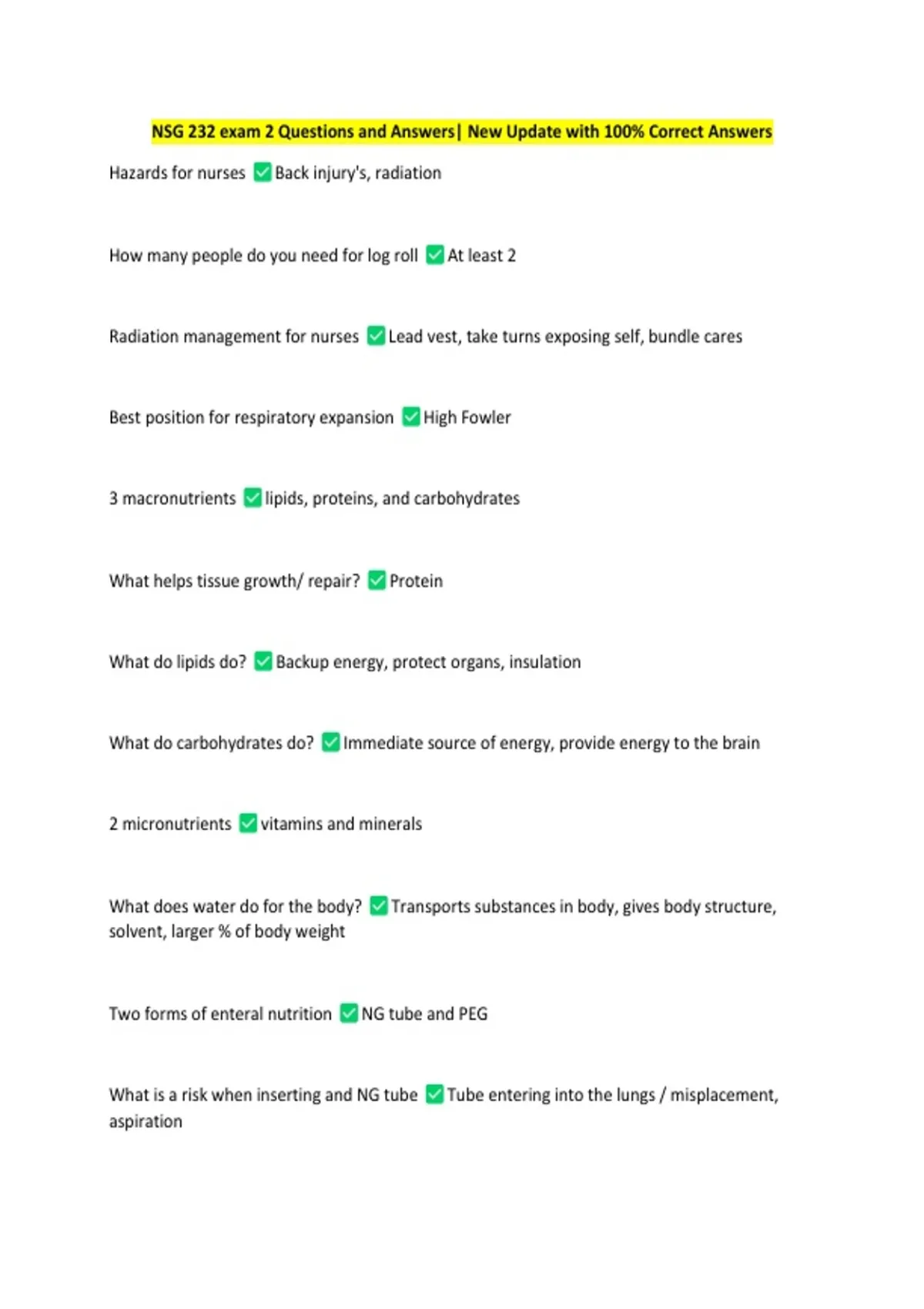 NSG 232 exam 2 Questions and Answers| New Update with 100% Correct Answers
