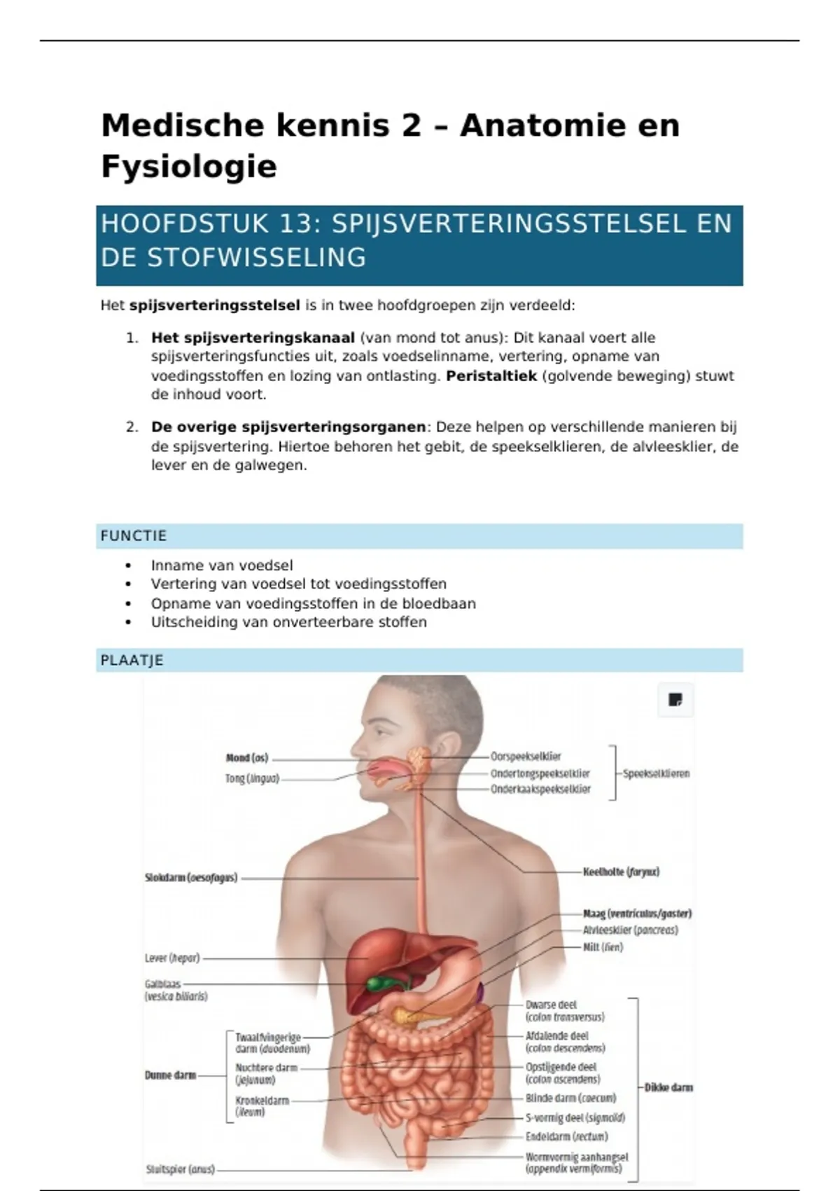 HOOFDSTUK 13: SPIJSVERTERINGSSTELSEL EN