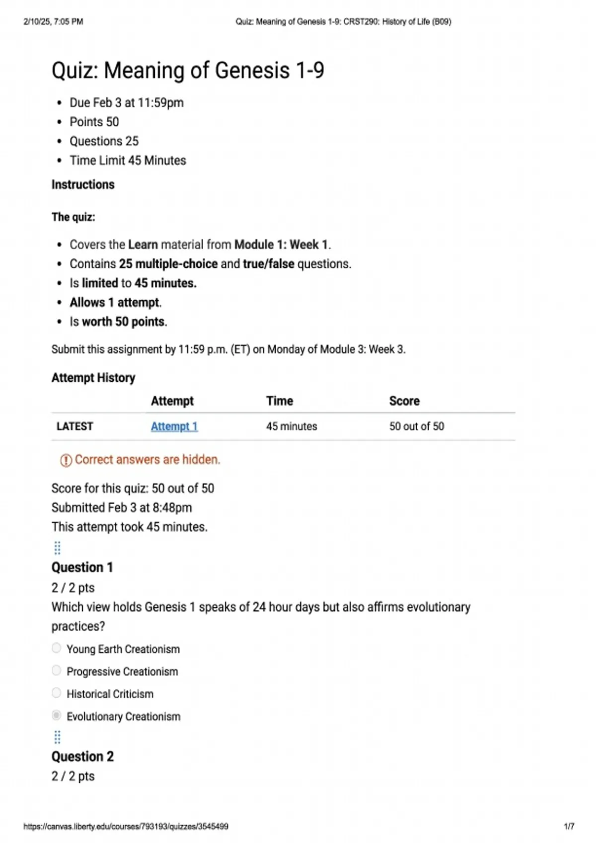 CRST290 Quiz 3- Meaning of Genesis 1-9| Questions and answers | Updated | Rated A+ | New edition | 100% verified correct