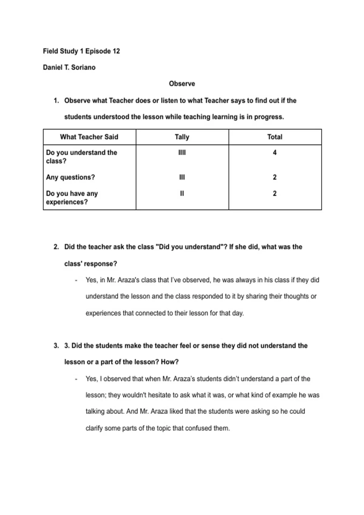 - Yes, I observed that when Mr. Araza’s students didn’t understand a part of the