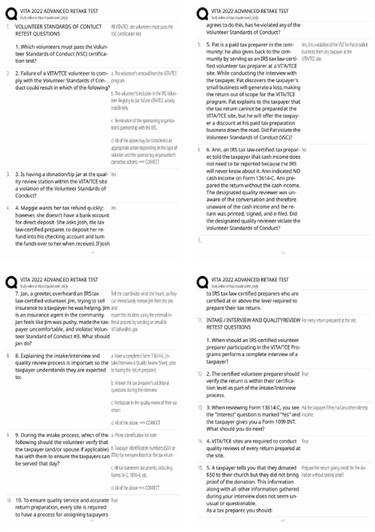 VITA 2022 Advanced Retake Test Questions & Answers | Score 100% / IRS Certified Exam Prep