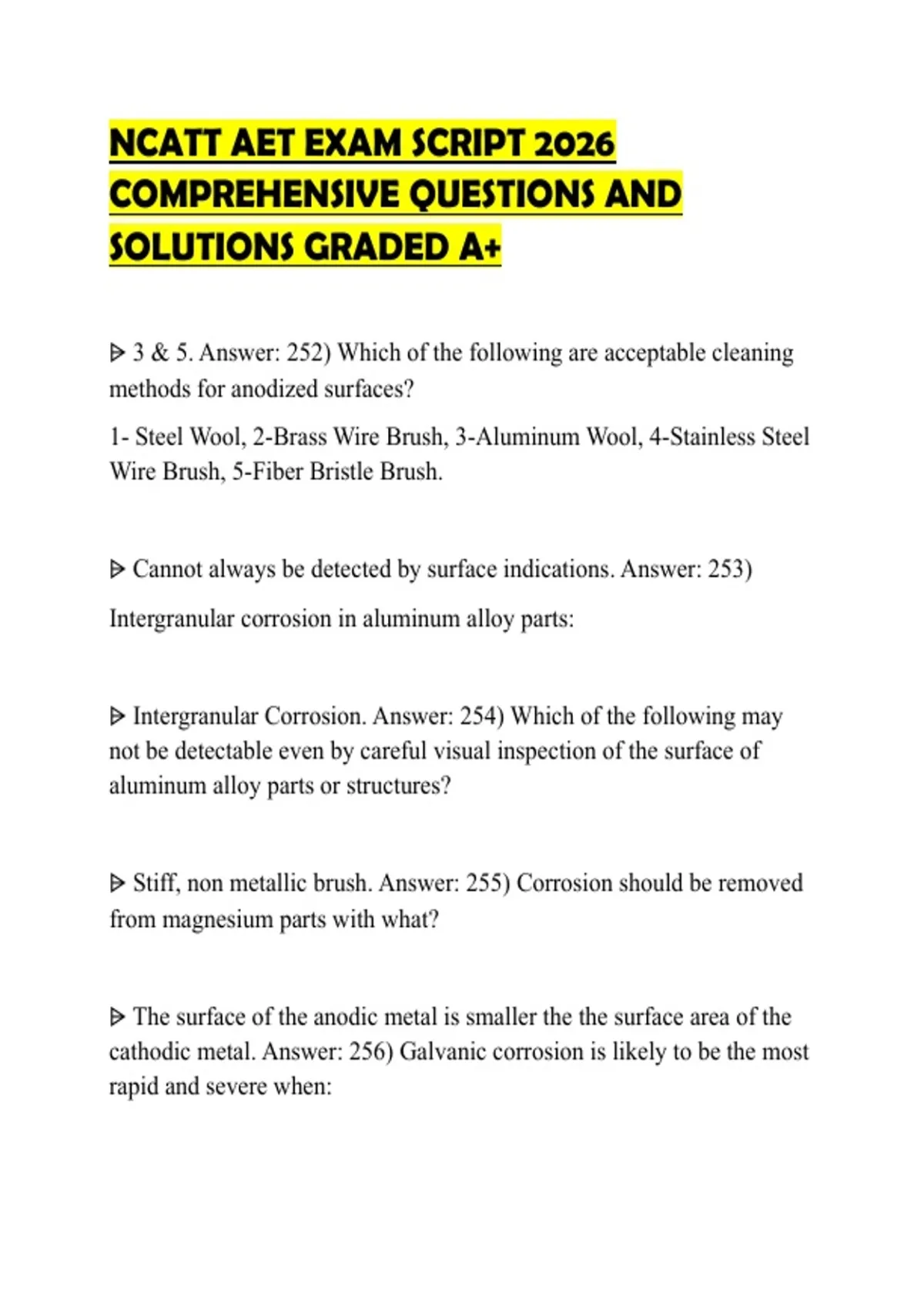 ⩥ Intergranular Corrosion. Answer: 254) Which of the following may