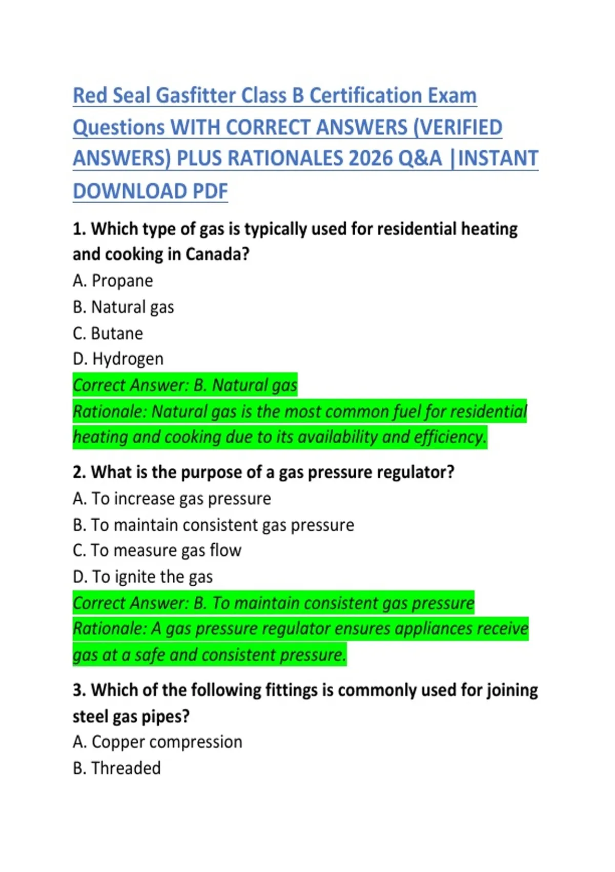 1. Which type of gas is typically used for residential heating
