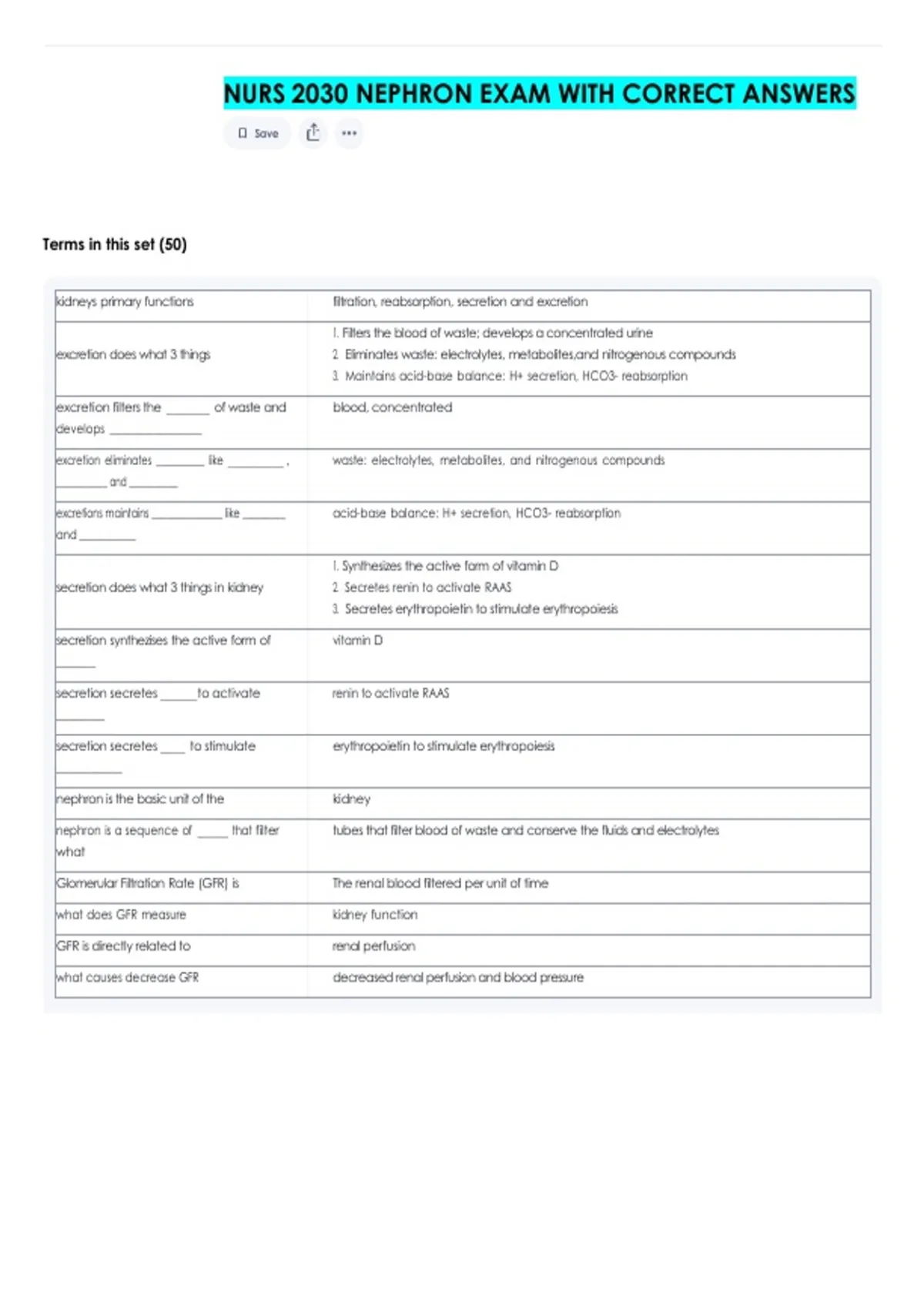 NURS 2030 NEPHRON EXAM WITH CORRECT ANSWERS