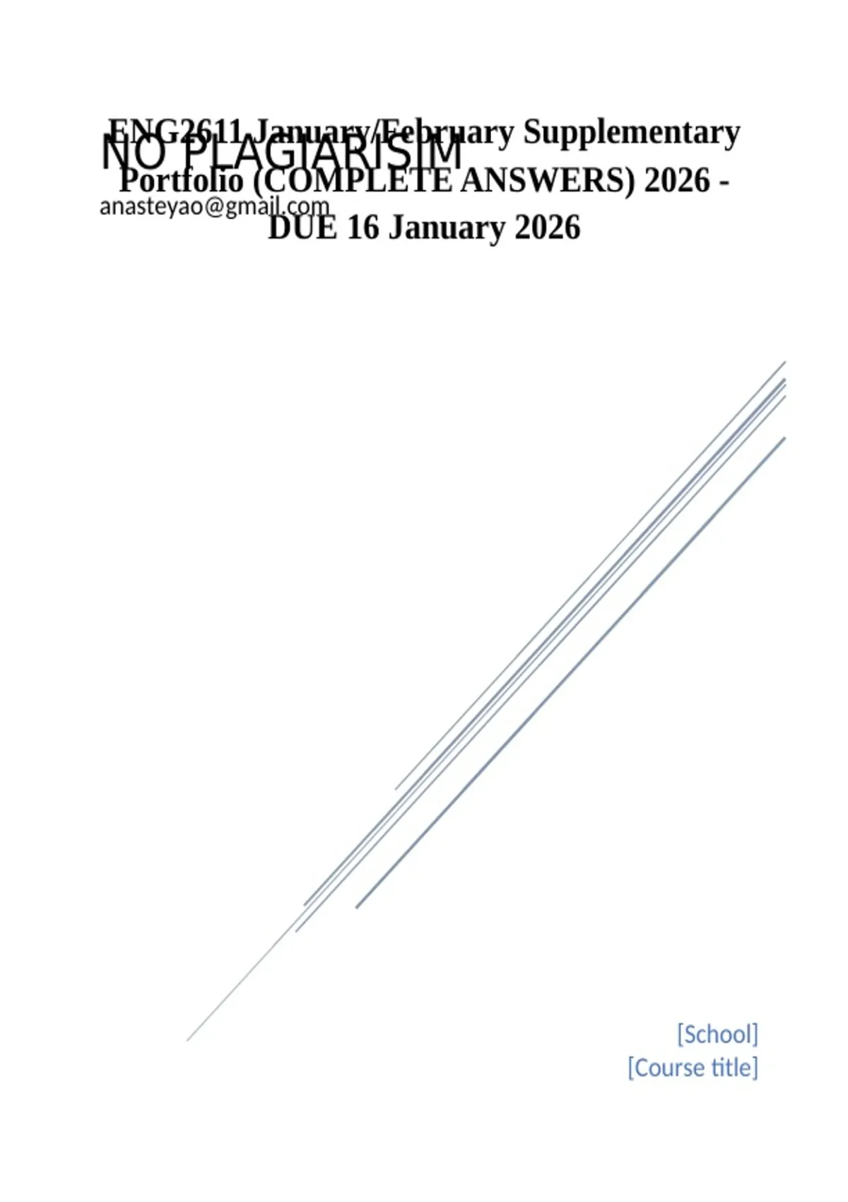 ENG2611 January/February Supplementary Portfolio (COMPLETE ANSWERS) 2026 - DUE 16