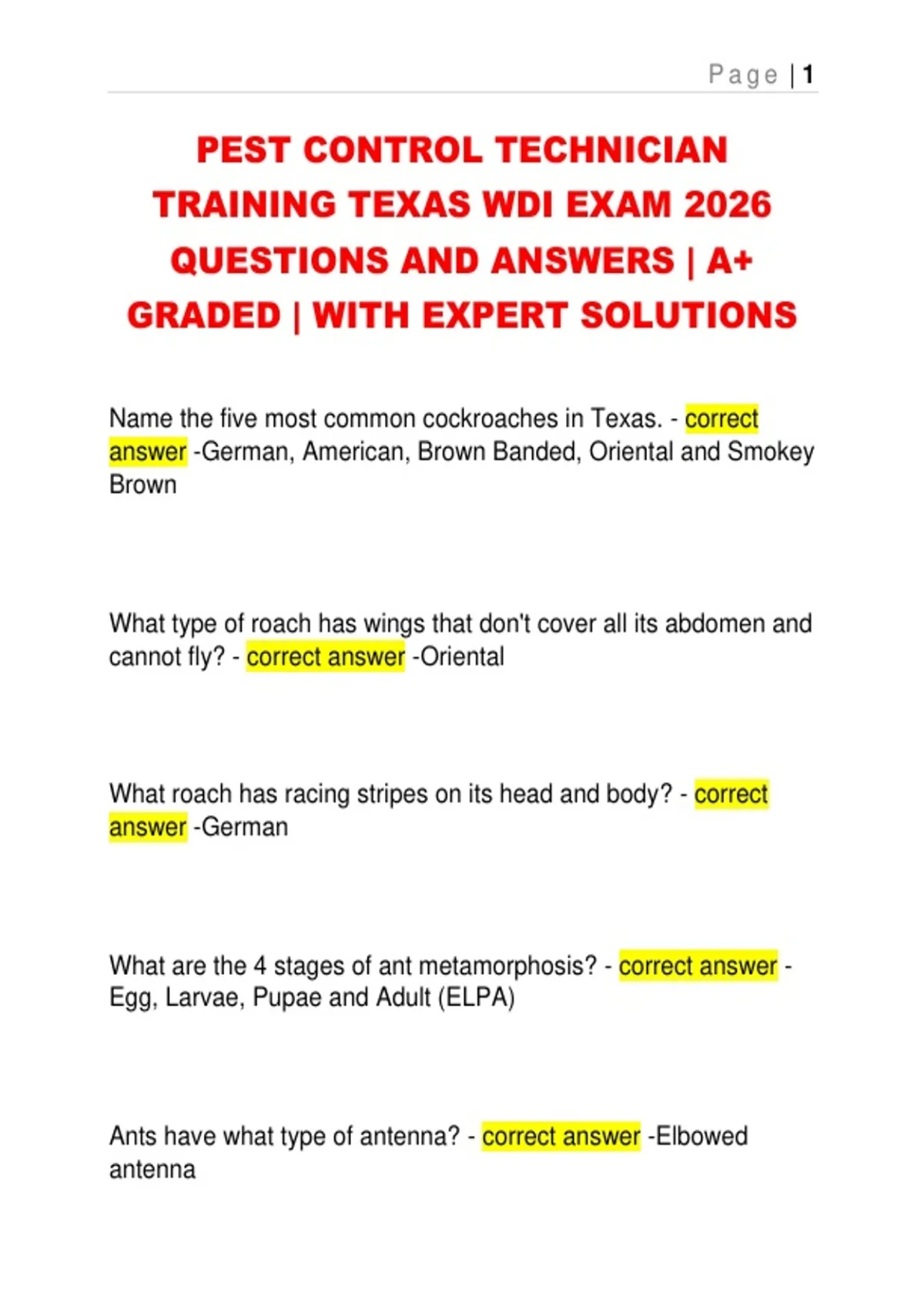 Name the five most common cockroaches in Texas. - correct