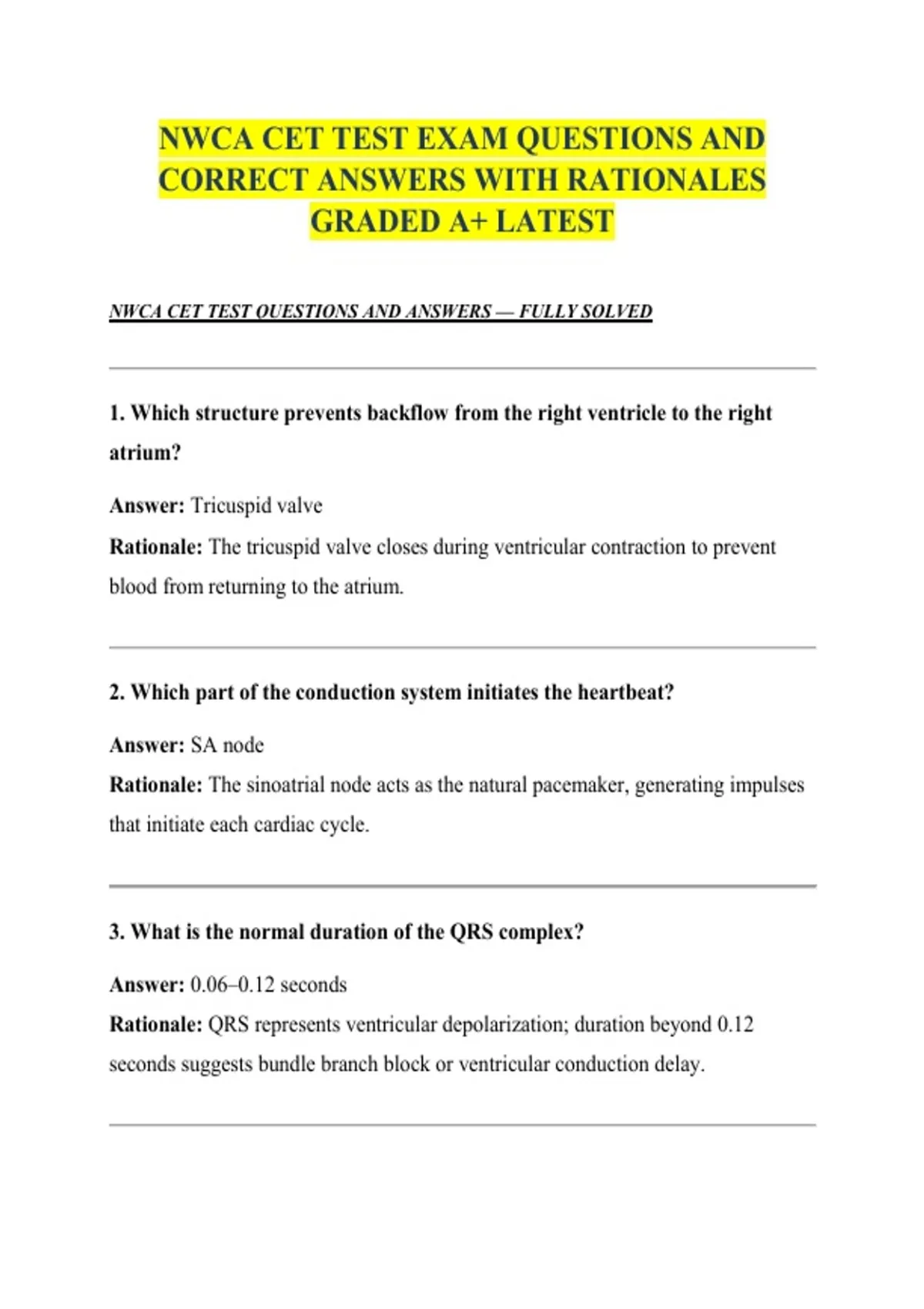 NWCA CET TEST QUESTIONS AND ANSWERS — FULLY SOLVED