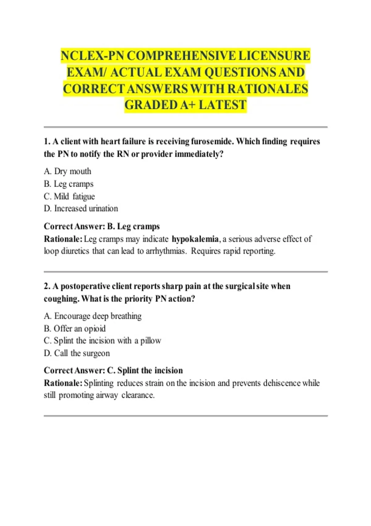 CORRECT ANSWERS WITH RATIONALES
