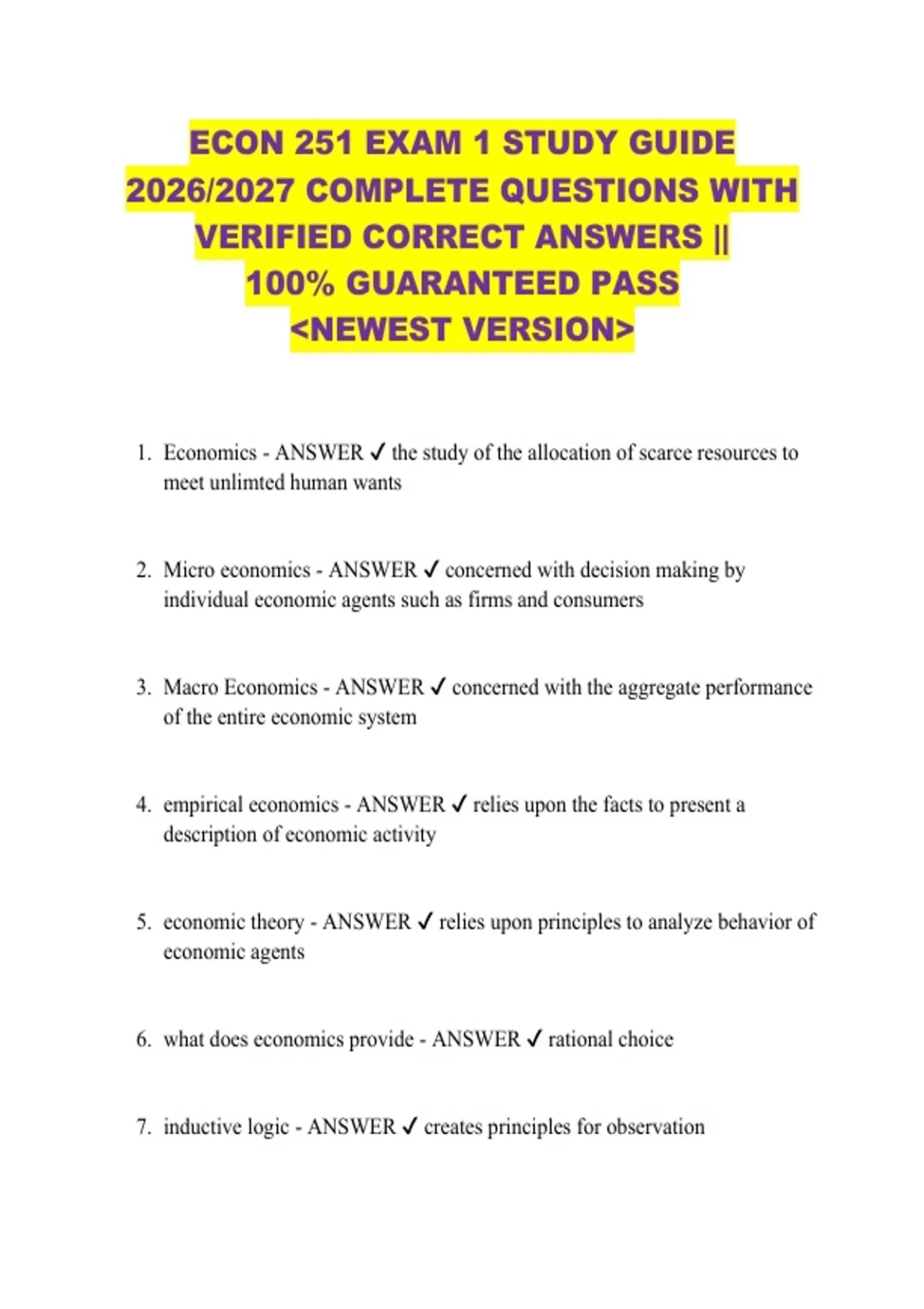 1. Economics - ANSWER ✔ the study of the allocation of scarce resources to