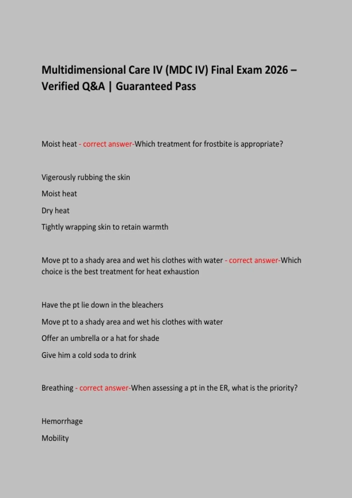 Multidimensional Care IV (MDC IV) Final Exam 2026 –
