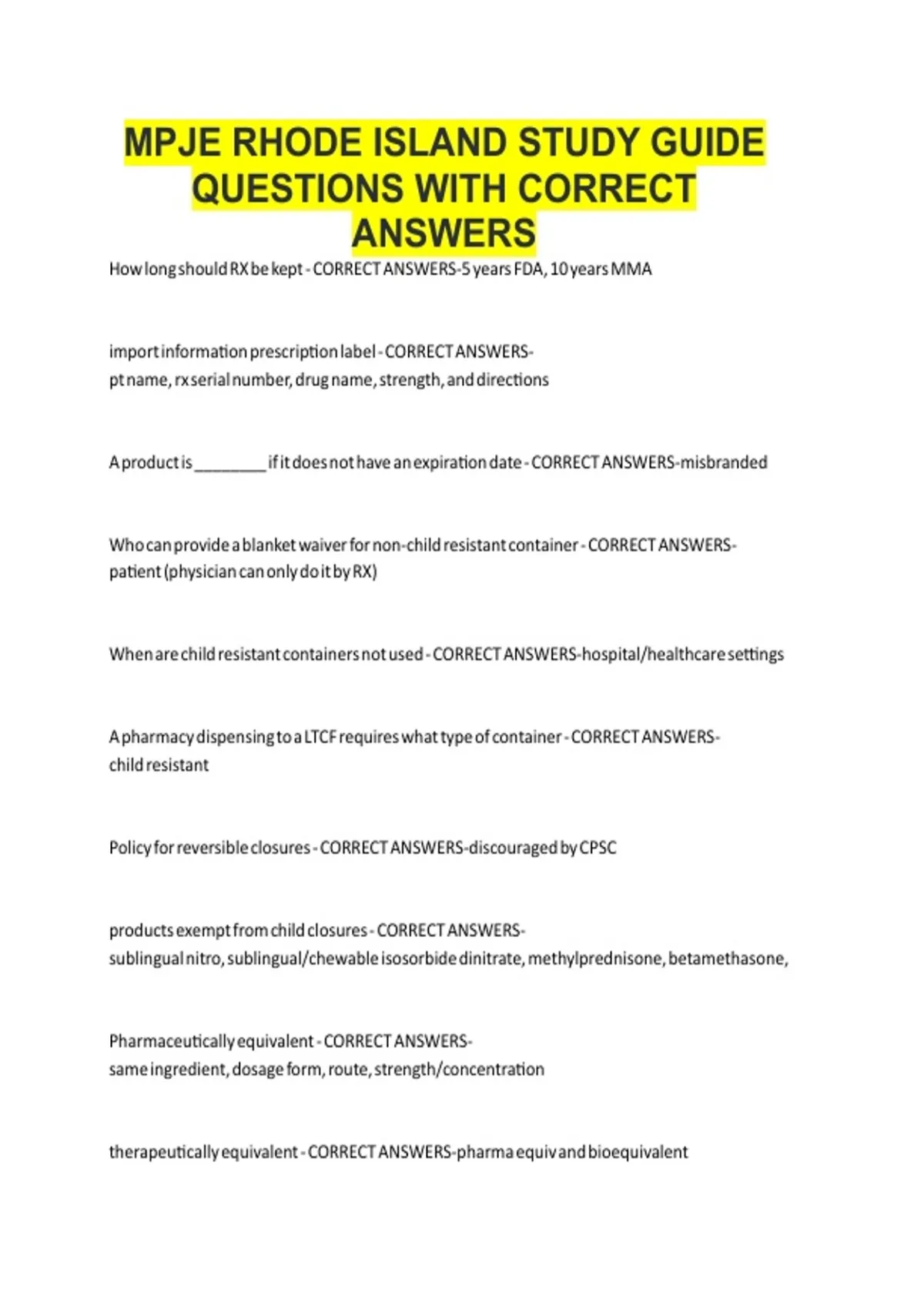 PharmaceuticallyIequivalentI-ICORRECTIANSWERS-