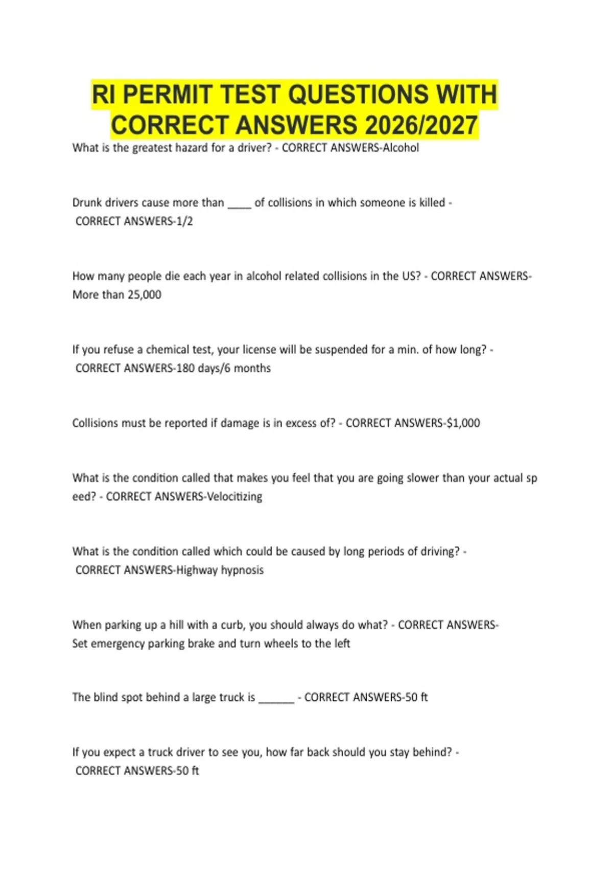 RI PERMIT TEST QUESTIONS WITH