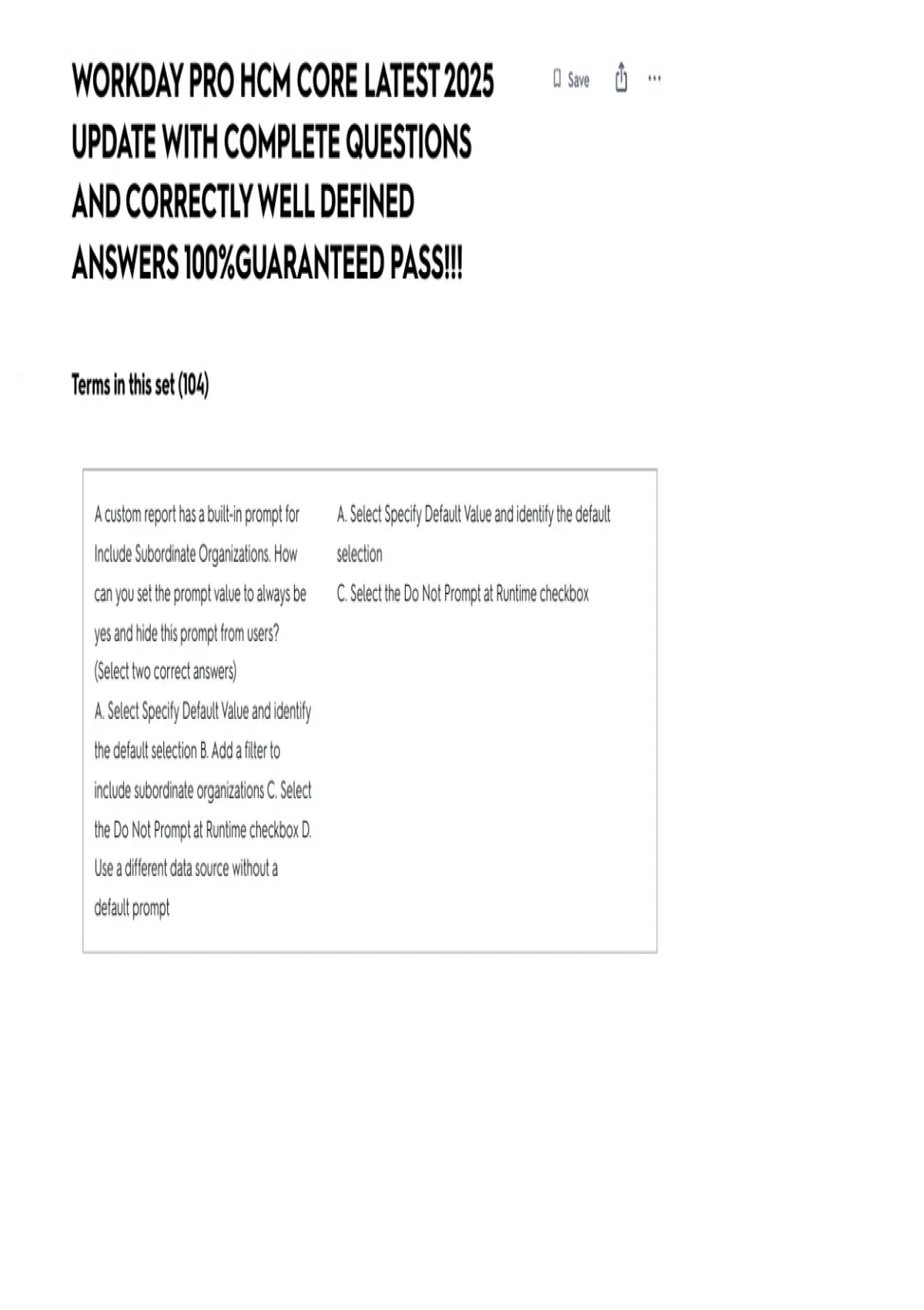 Latest 2025 Workday Pro HCM Core exam material. Includes complete questions with verified correct answers to help professionals review Human Capital Management concepts, reinforce practical knowledge, and prepare effectively for Workday HCM certification.