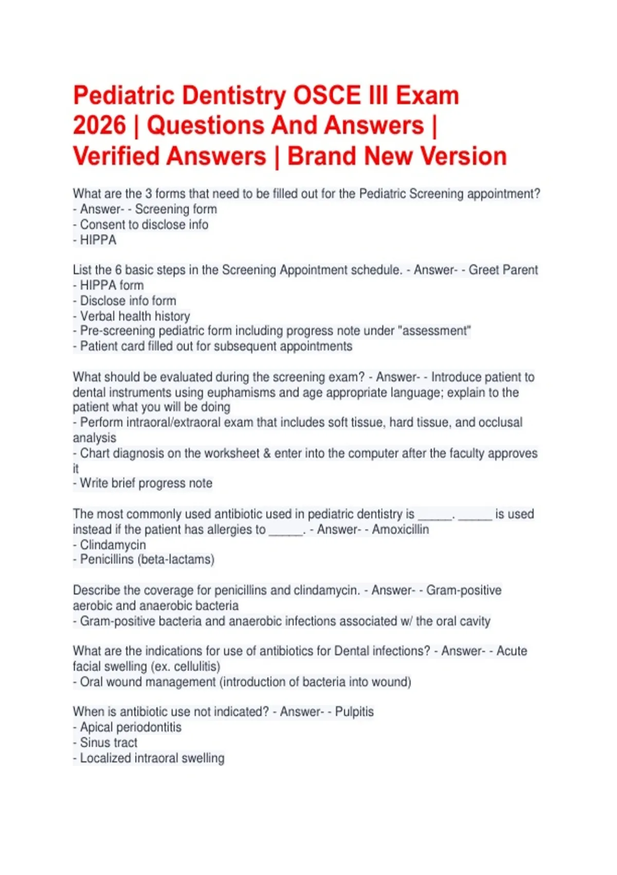 Pediatric Dentistry OSCE III Exam 2026 | Questions And Answers | Verified Answers | Brand New Version