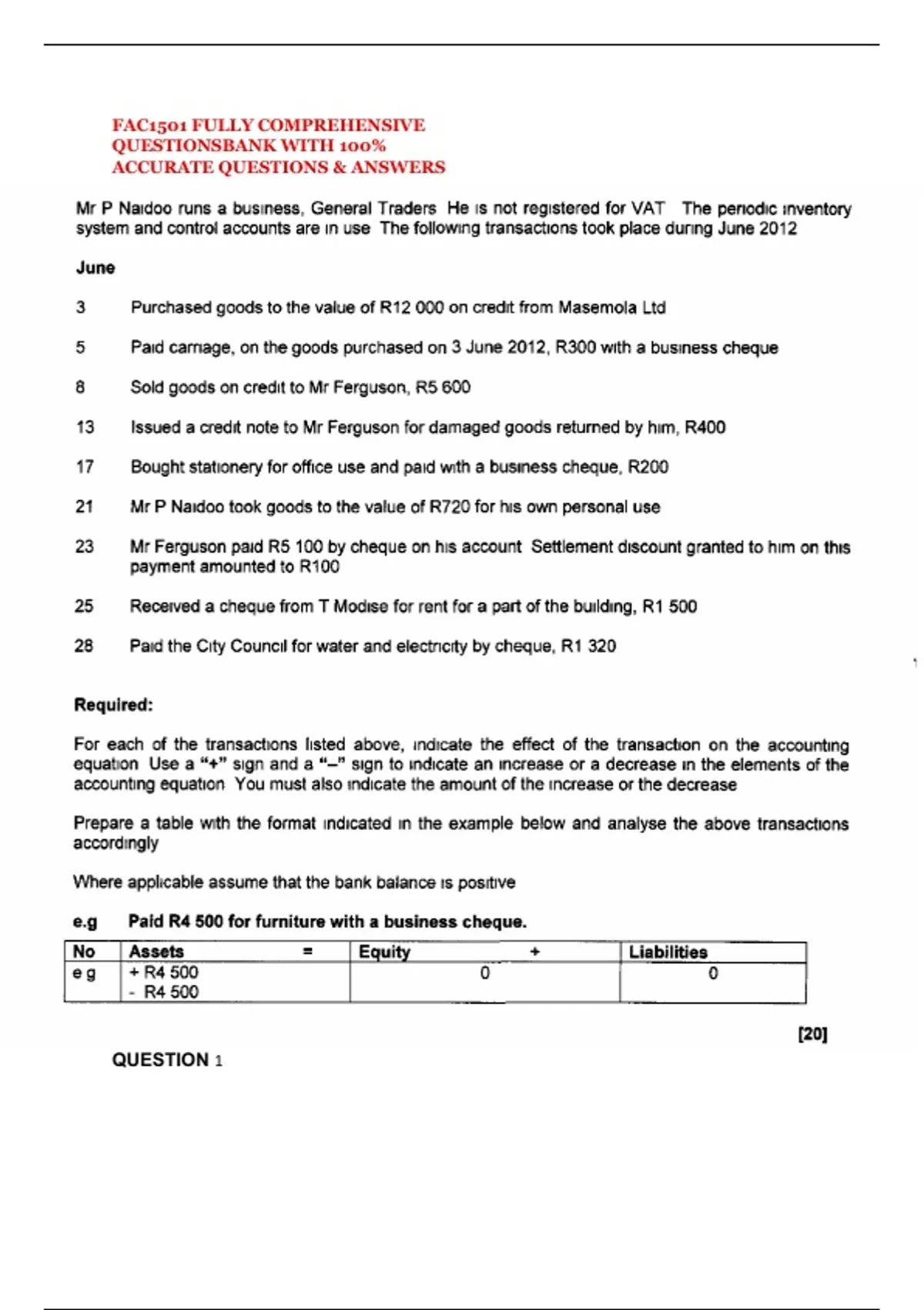 FAC1501 FULLY COMPREHENSIVE QUESTIONSBANK WITH 100% ACCURATE QUESTIONS & ANSWERS