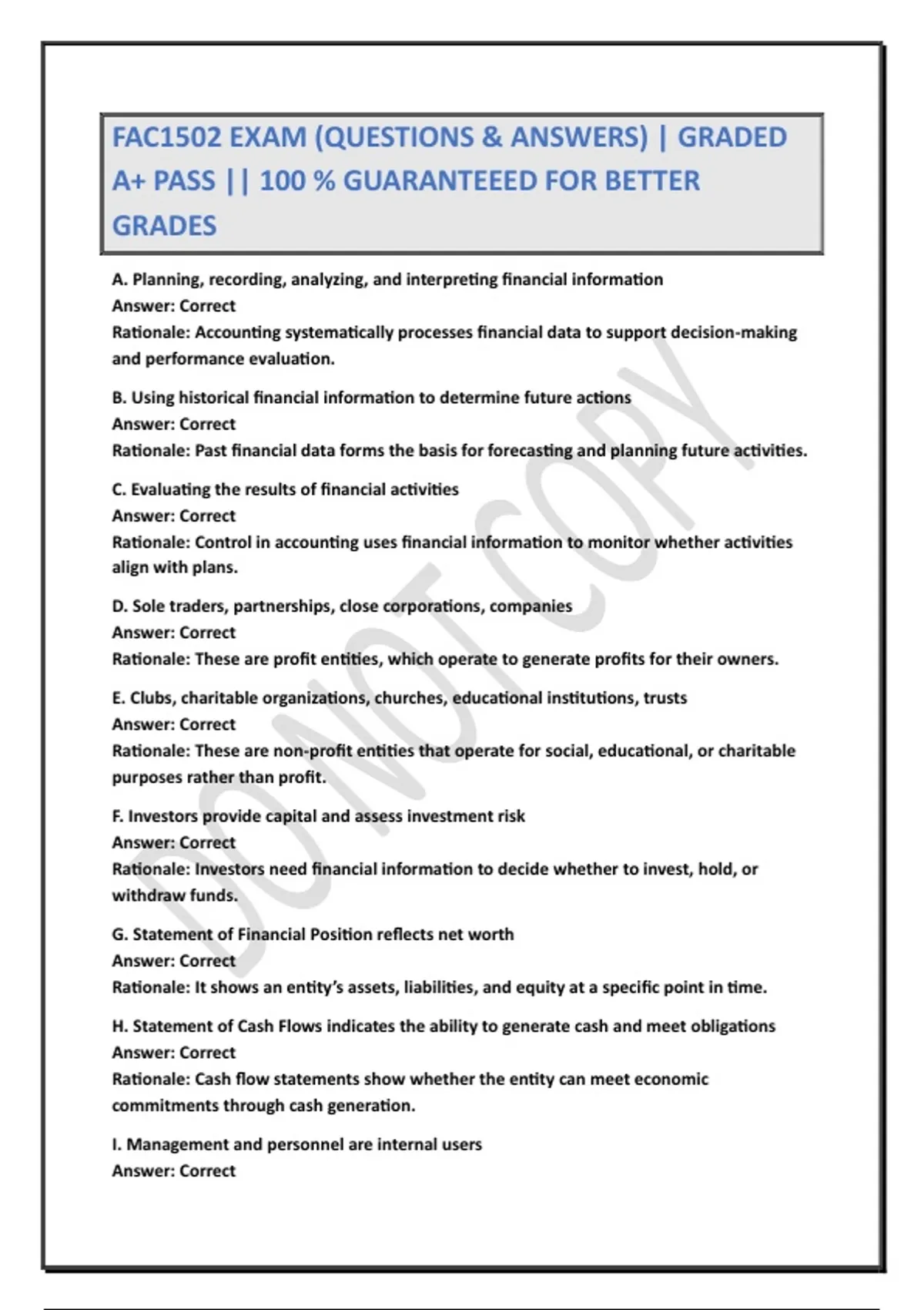 FAC1502 EXAM (QUESTIONS & ANSWERS) | GRADED