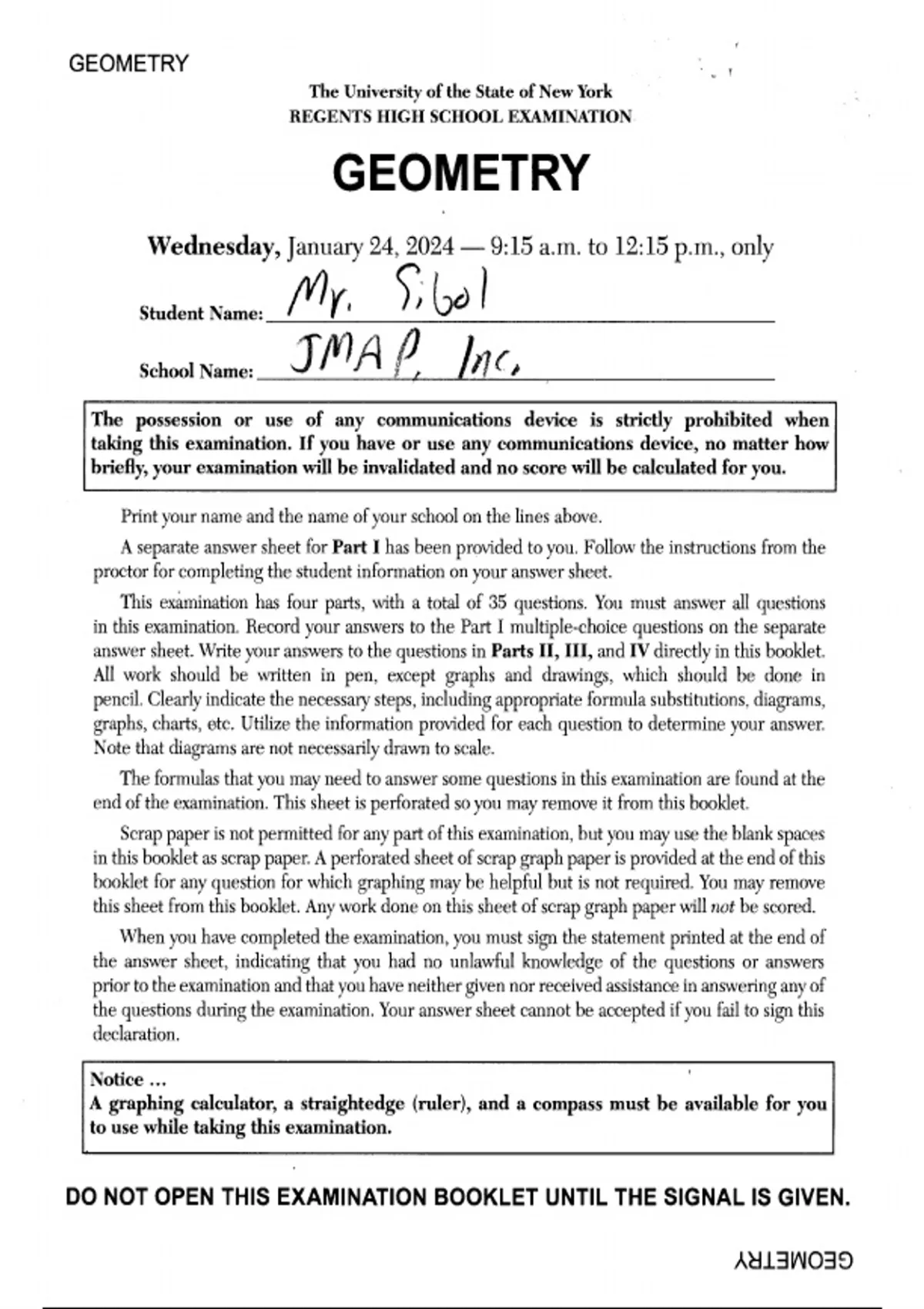 answer sheet. Write your answers to the questions in Parts II, III, and IV directly in this booklet.