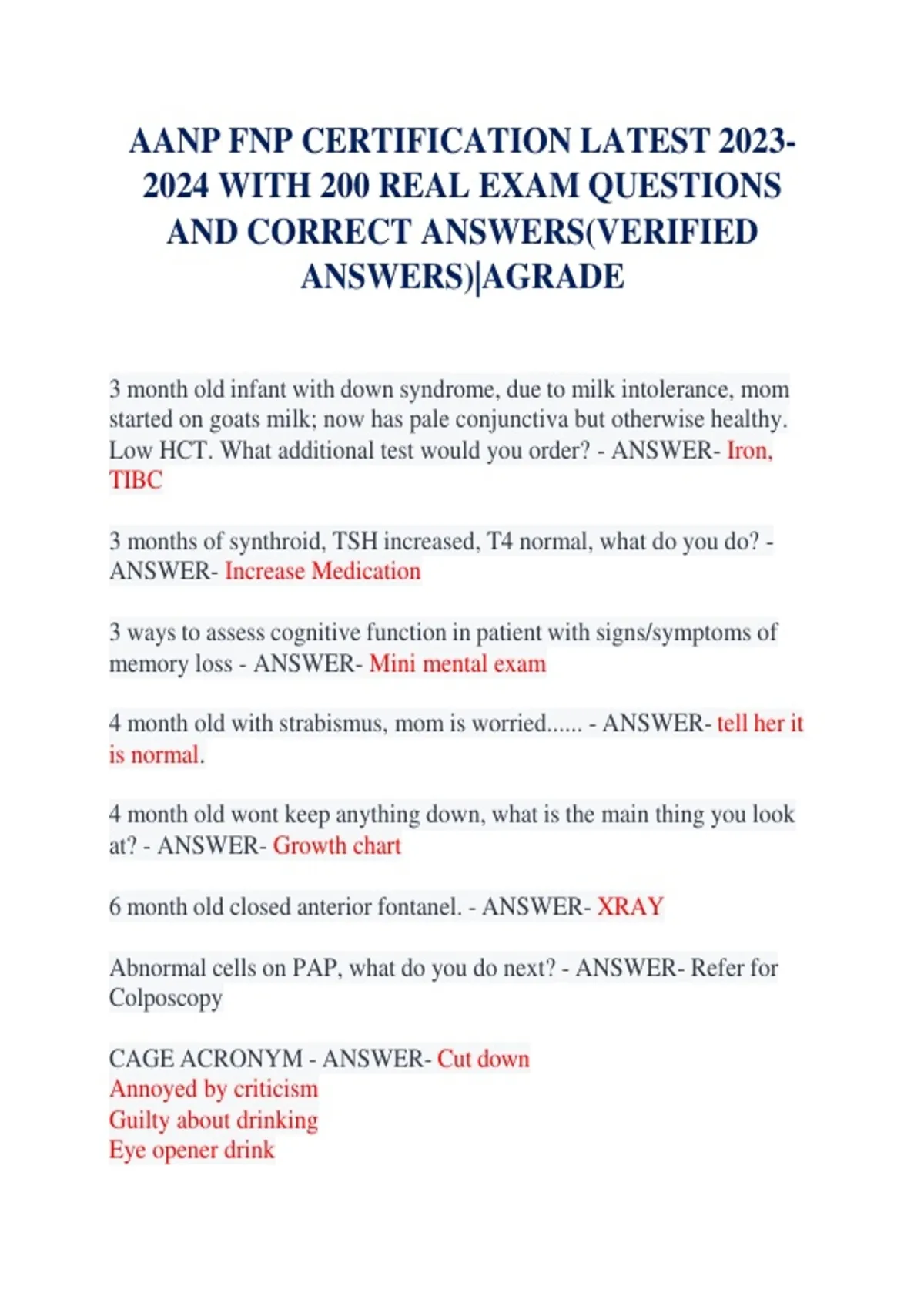 AANP FNP CERTIFICATION LATEST 2023- 2024 WITH 200 REAL EXAM QUESTIONS AND CORRECT ANSWERS(VERIFIED ANSWERS)|AGRADE