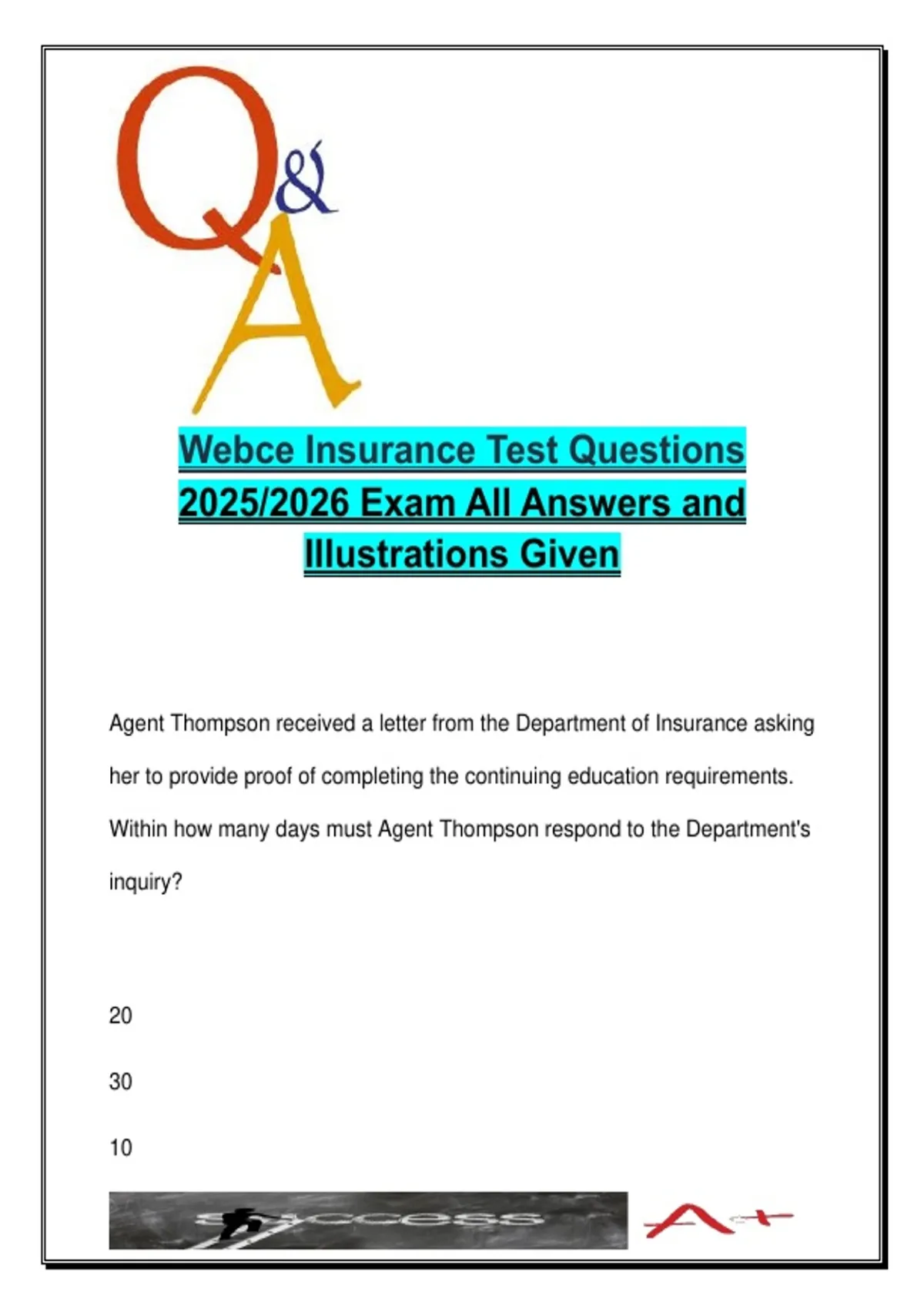 Agent Thompson received a letter from the Department of Insurance asking