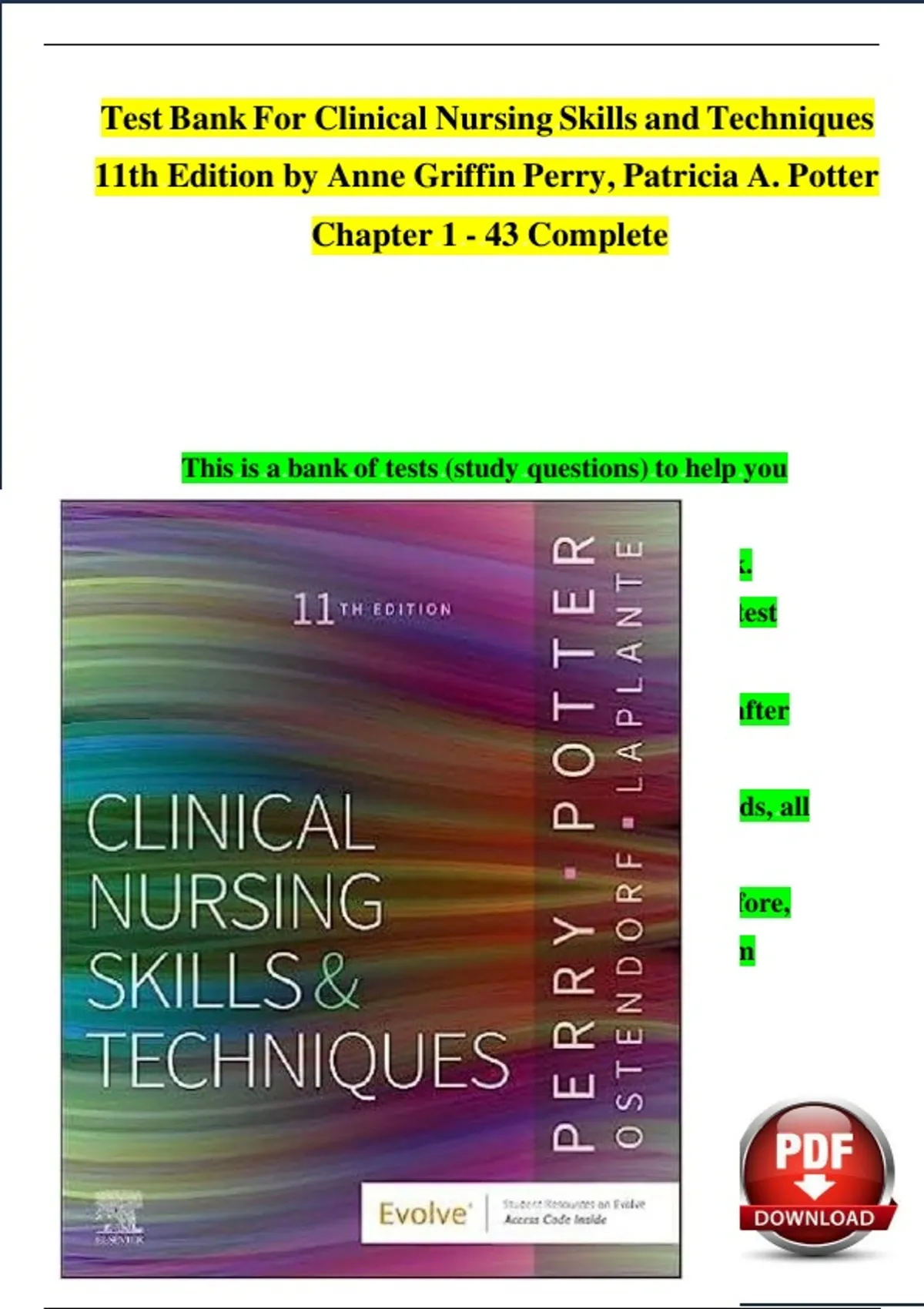 ,Test Bank For Clinical Nursing Skills and Techniques 11th Edition by Anne Griffin