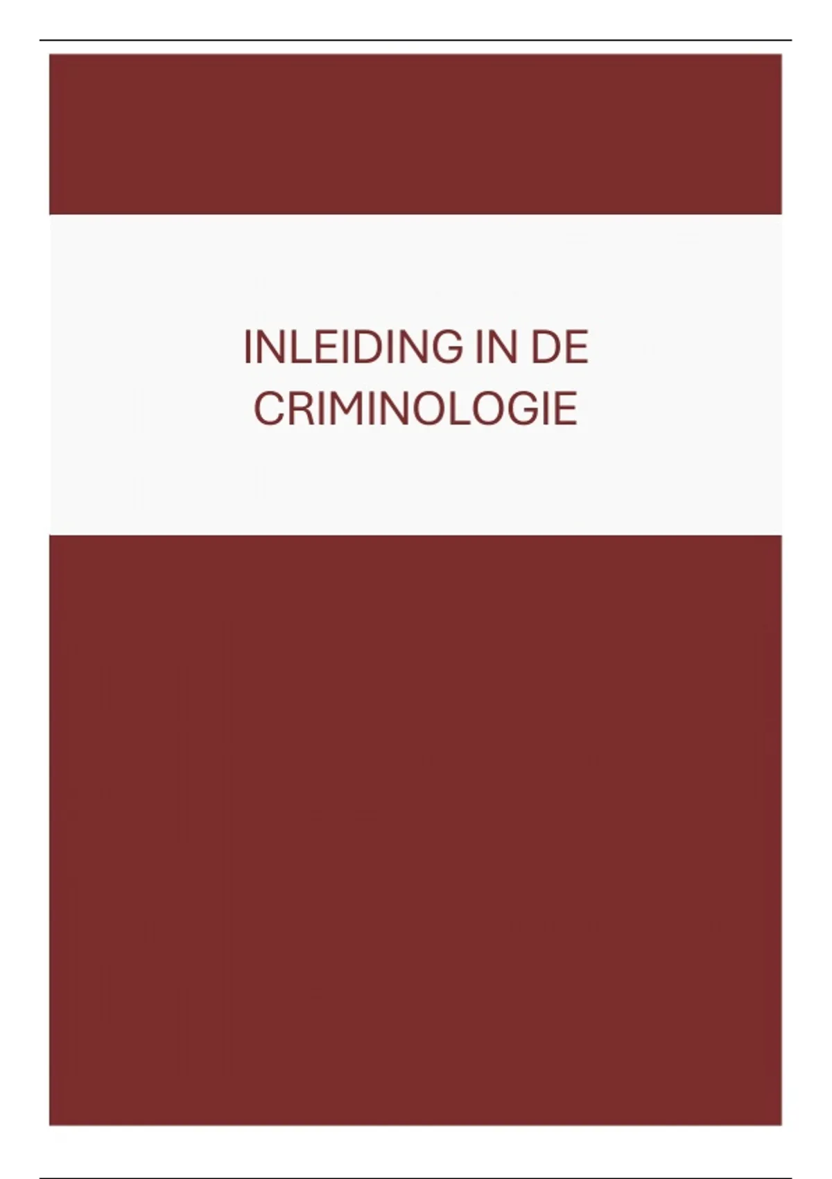 Samenvatting van het vak inleiding in de criminologie aan de KUL. Combineert de reader en de slides.