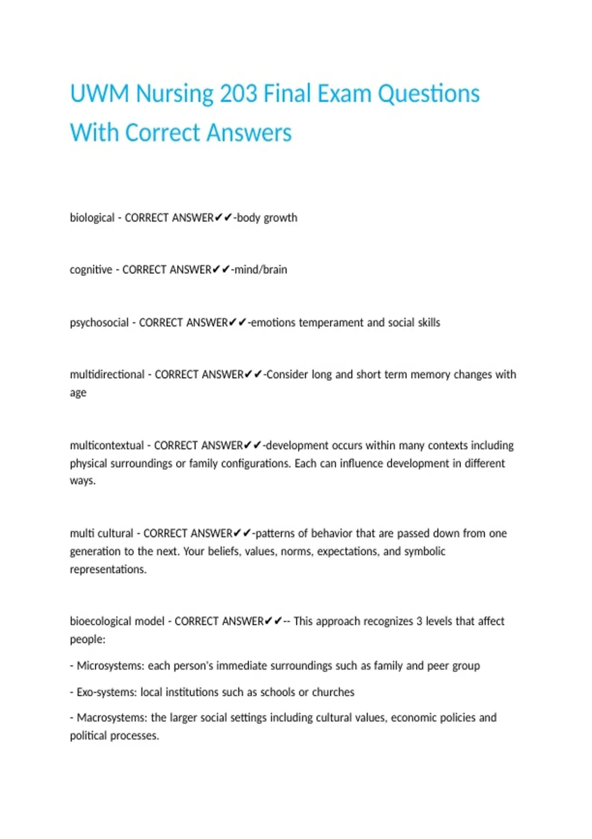 UWM Nursing 203 Final Exam Questions With Correct Answers.