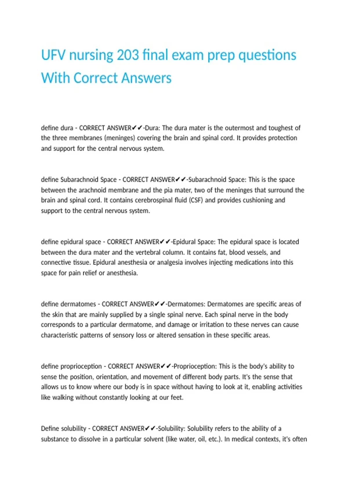 UFV nursing 203 final exam prep questions With Correct Answers.