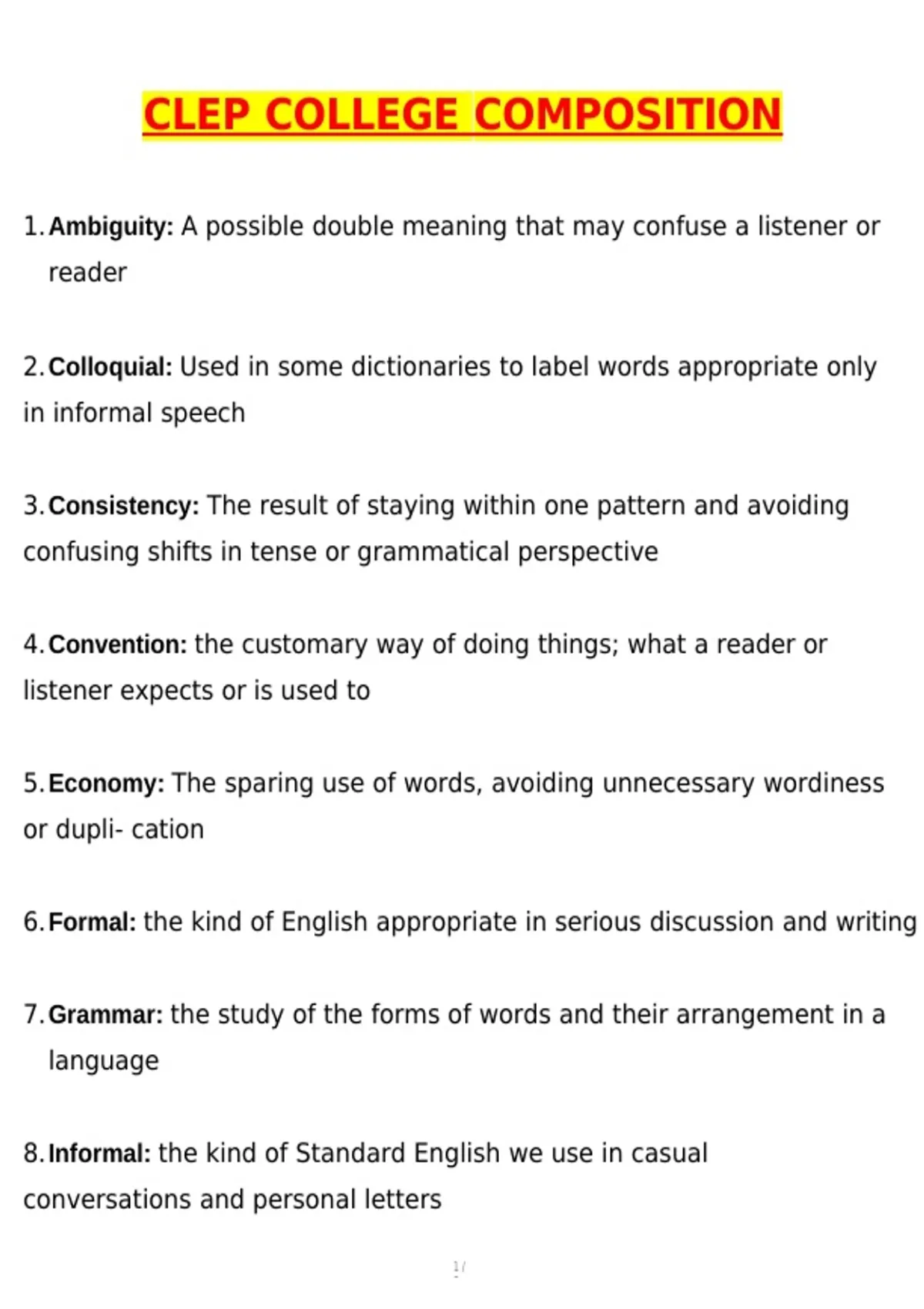 CLEP College Composition (Latest 2026 / 2027 Update) Questions and Verified Answers | 100% Correct | Grade A+