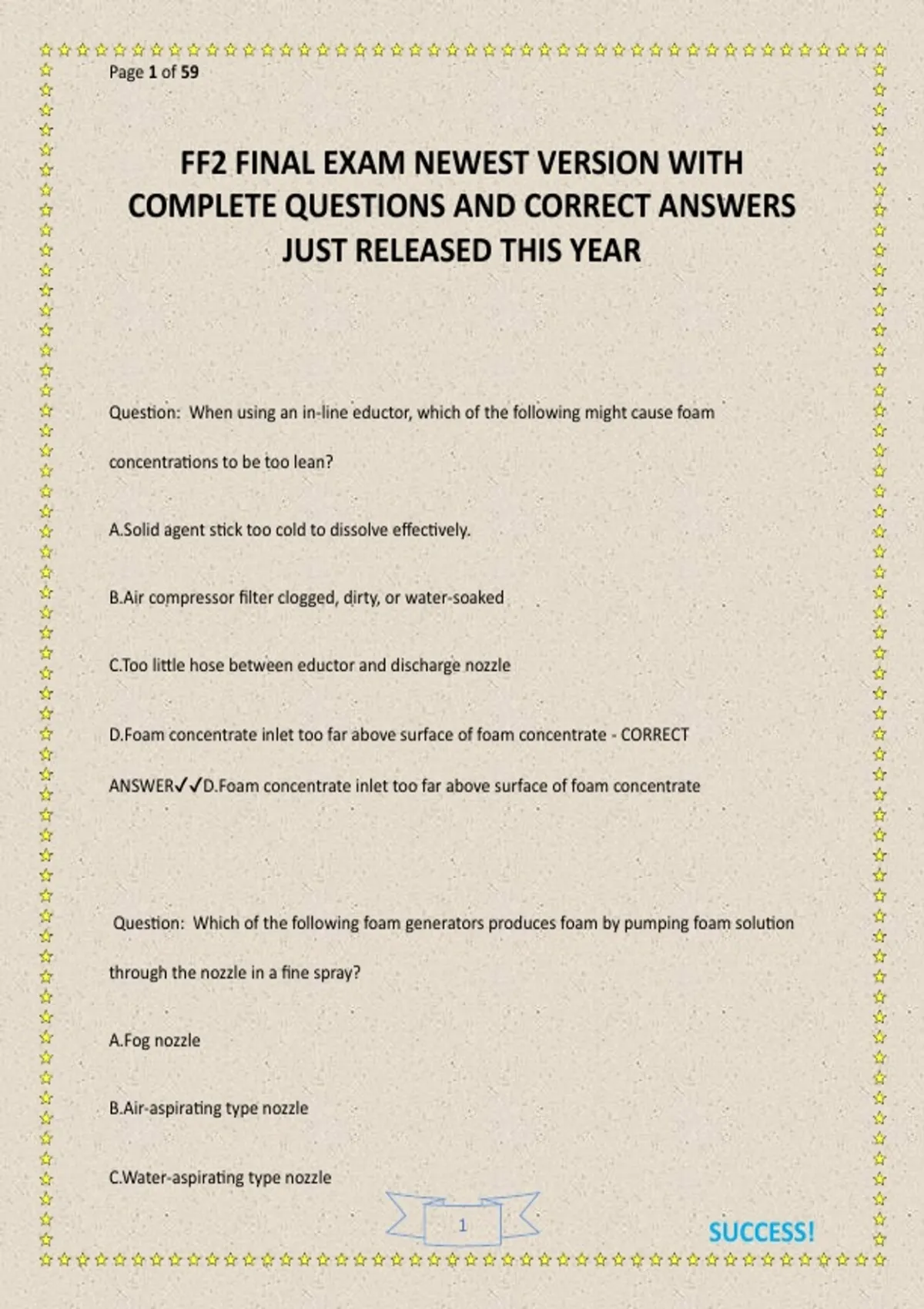 FF2 FINAL EXAM NEWEST VERSION WITH COMPLETE QUESTIONS AND CORRECT ANSWERS JUST RELEASED THIS YEAR