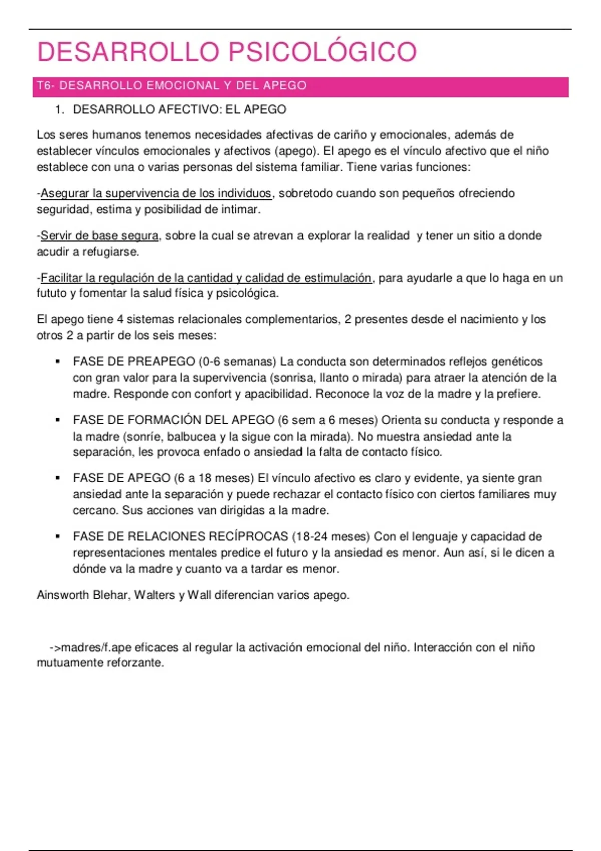 T6- DESARROLLO EMOCIONAL Y DEL APEGO