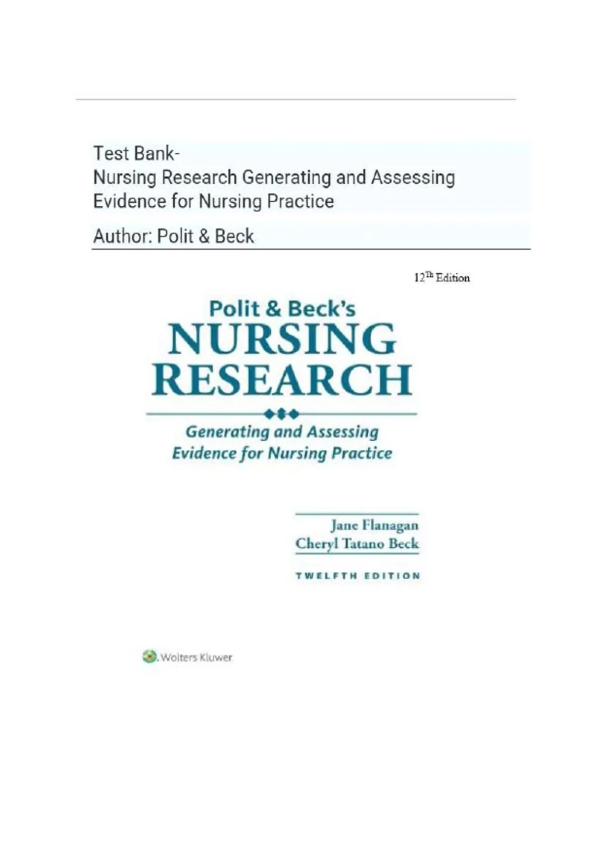 ,Nursing Research Generating and Assessing Evidence for Nursing Practice 12th Edition Polit B