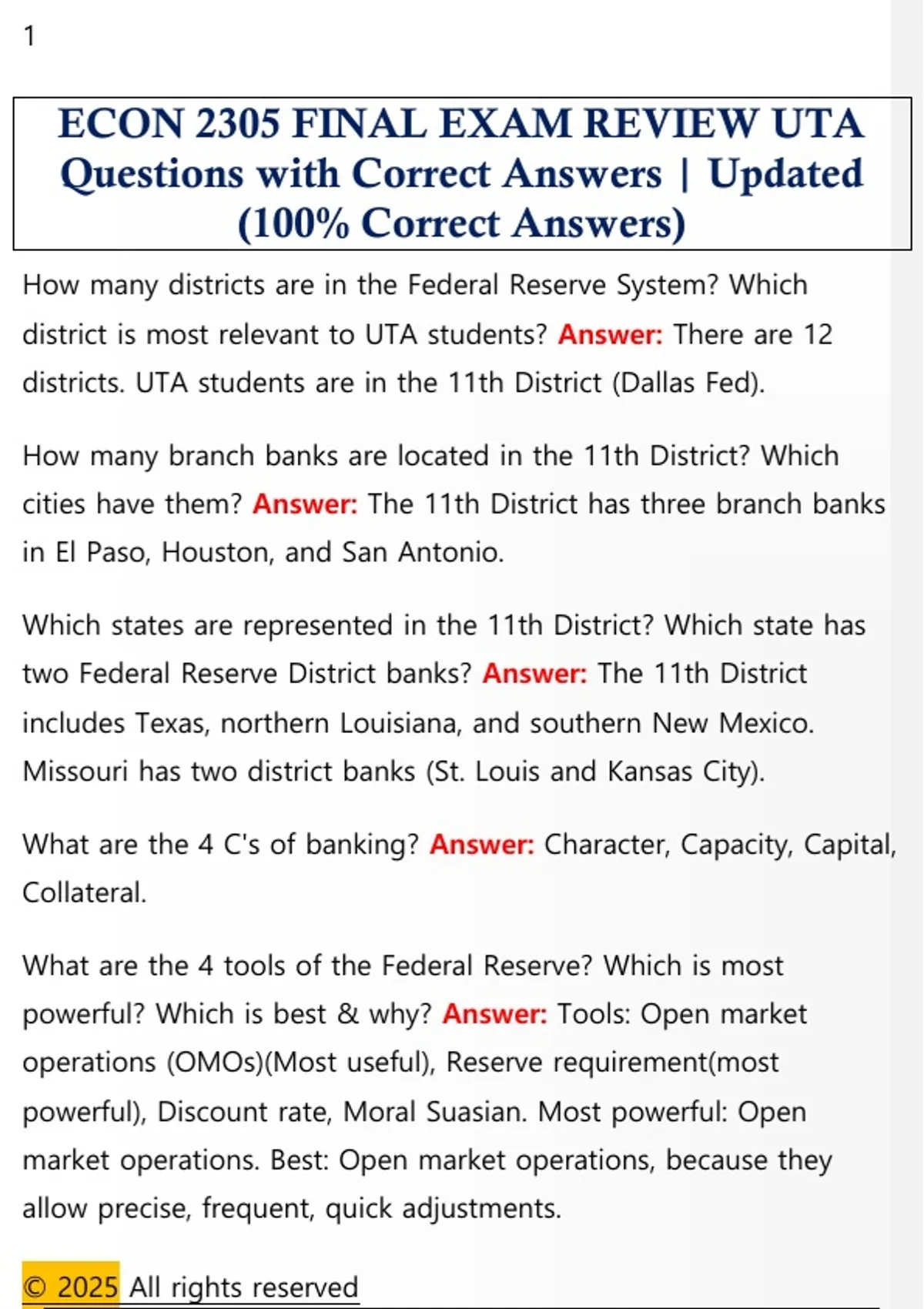 ECON 2305 FINAL EXAM REVIEW UTA