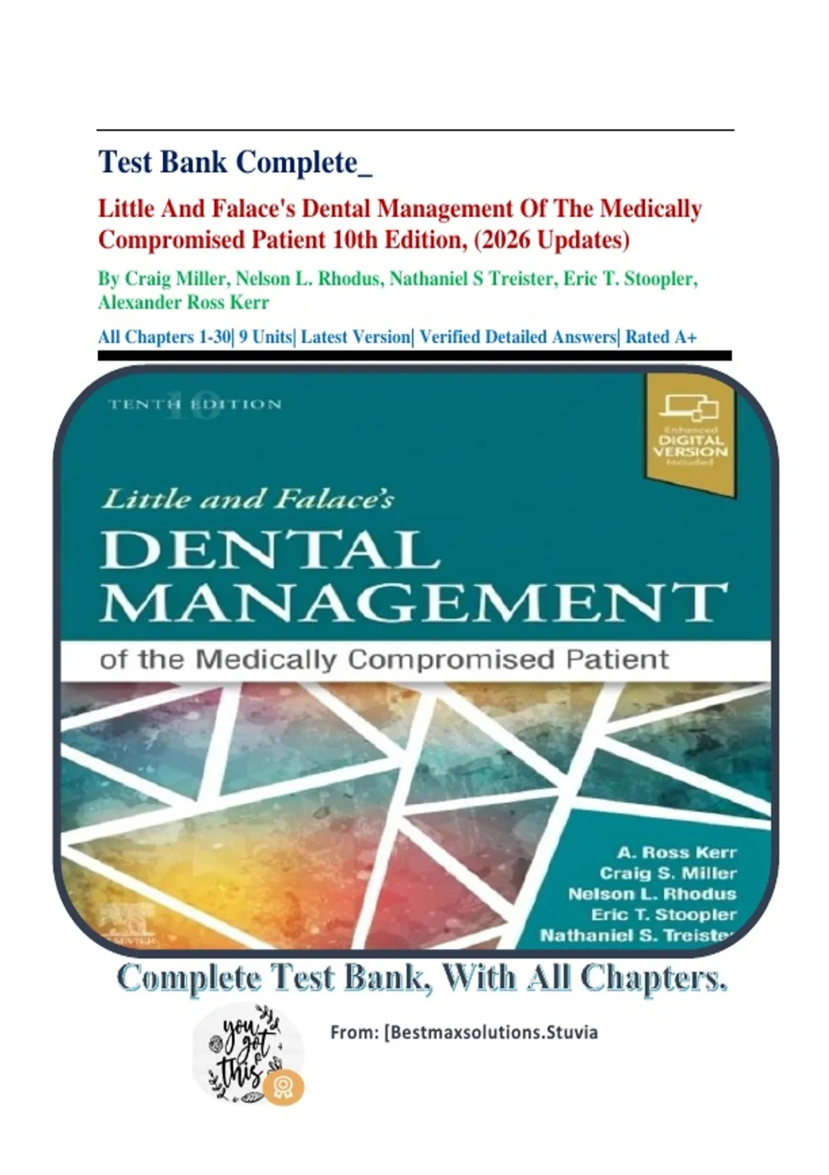 Craig Miller: Little and Falace's Dental Management of the Medically Compromised Patient 10th Edition, Test Bank