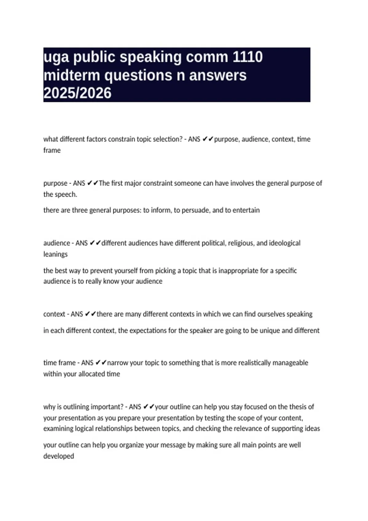 what different factors constrain topic selection? - ANS ✔✔purpose, audience, context, time