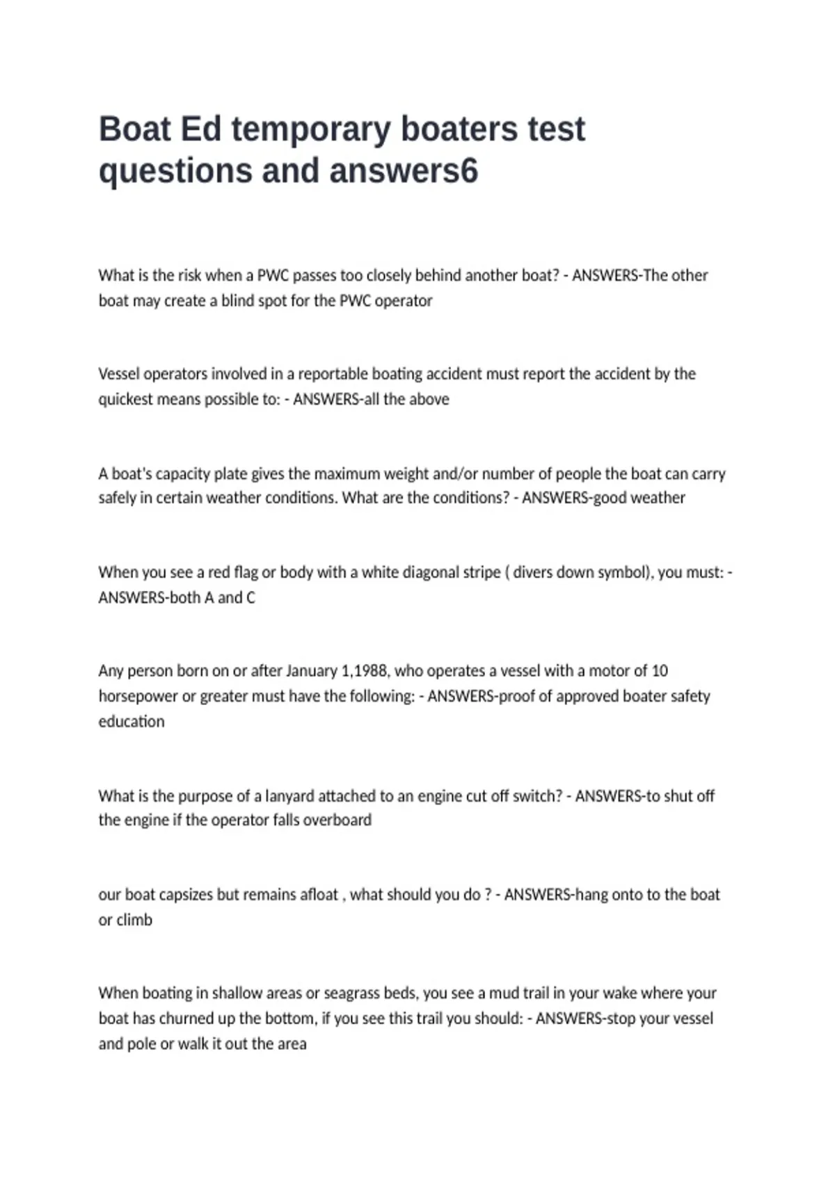 horsepower or greater must have the following: - ANSWERS-proof of approved boater safety