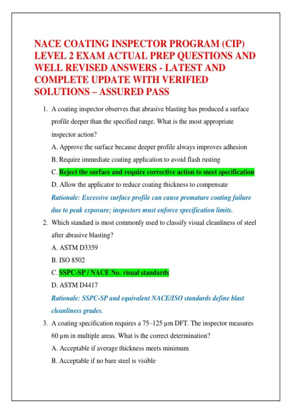 Rationale: SSPC-SP and equivalent NACE/ISO standards define blast