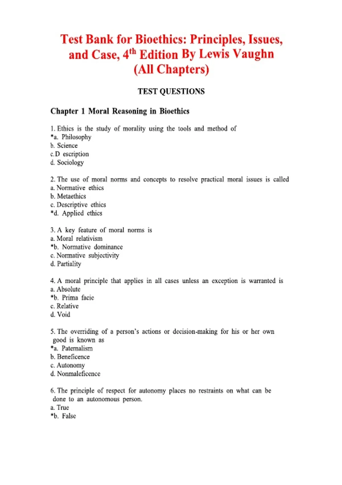 Test Bank: Bioethics: Principles, Issues, and Cases (4th Edition) – Lewis Vaughn