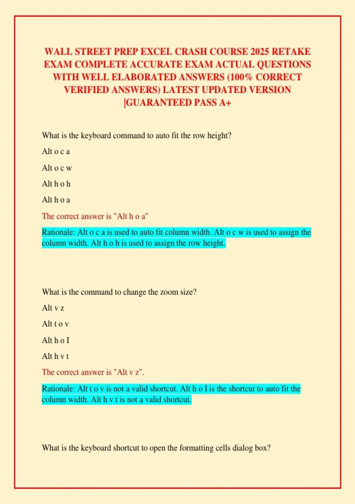 WALL STREET PREP EXCEL CRASH COURSE 2025 RETAKE EXAM COMPLETE ACCURATE EXAM ACTUAL QUESTIONS WITH WELL ELABORATED ANSWERS (100% CORRECT VERIFIED ANSWERS) LATEST UPDATED VERSION |GUARANTEED PASS A+