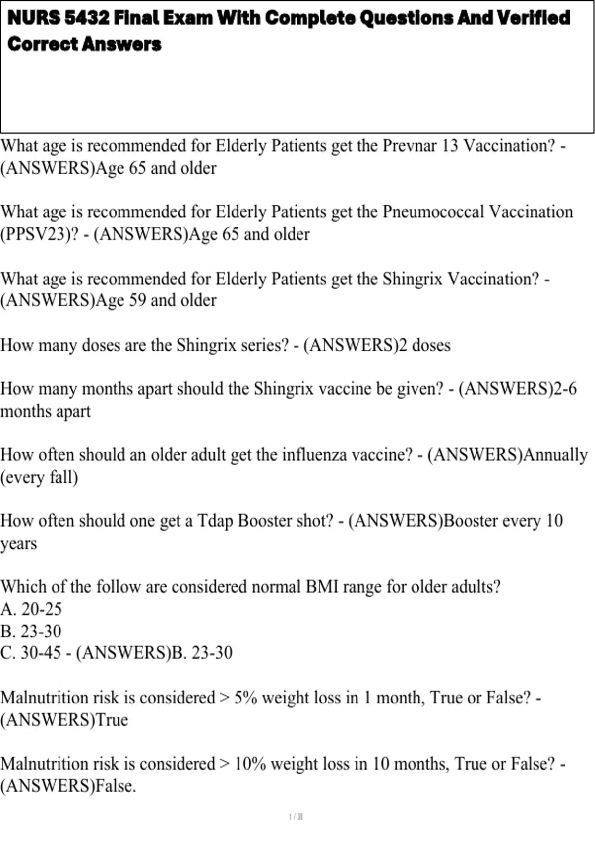 , NURS 5432 Final Exam With Complete Questions And Verified