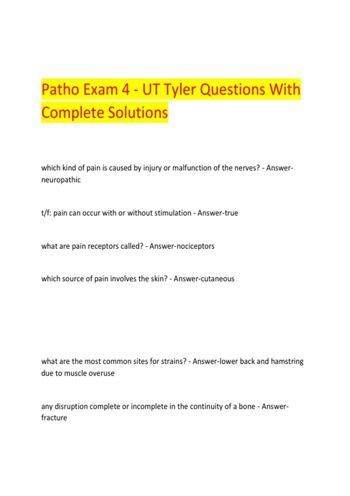Patho Exam 4 - UT Tyler Questions With Complete Solutions