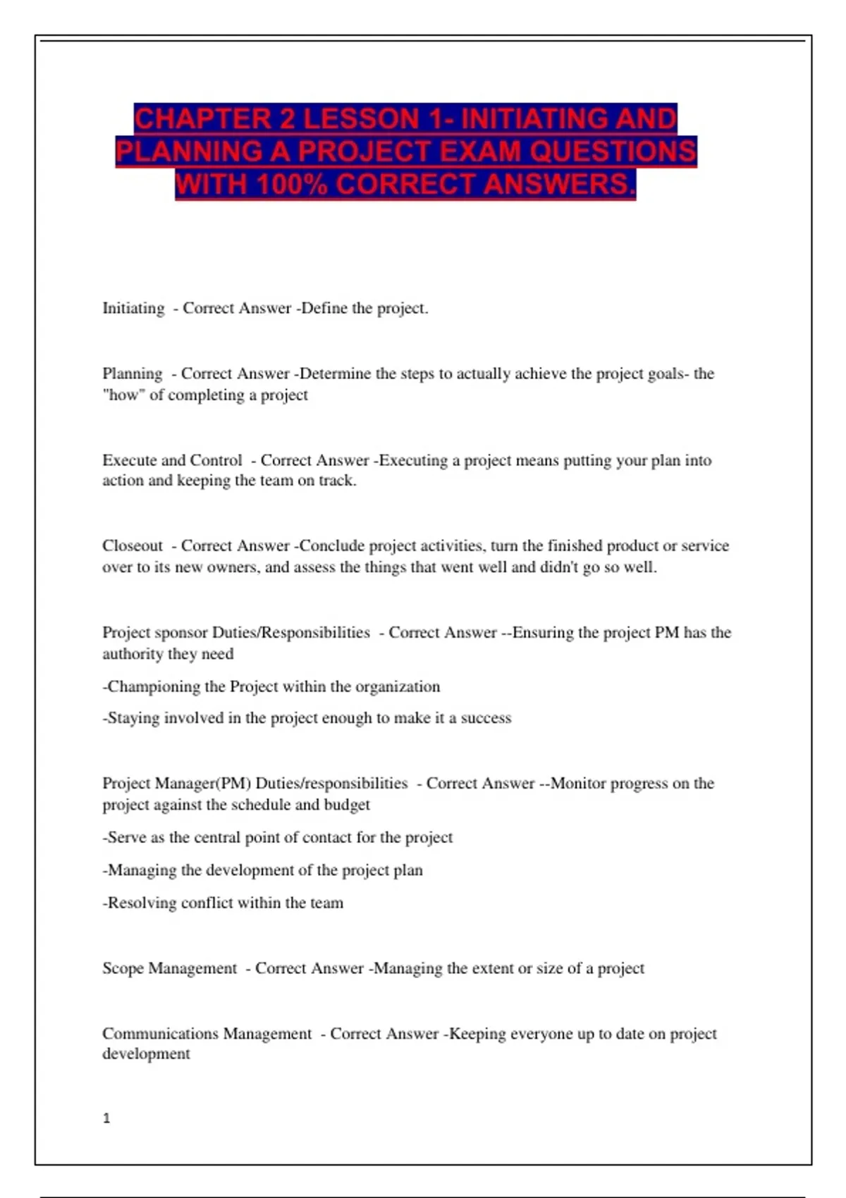 PLANNING A PROJECT EXAM QUESTIONS
