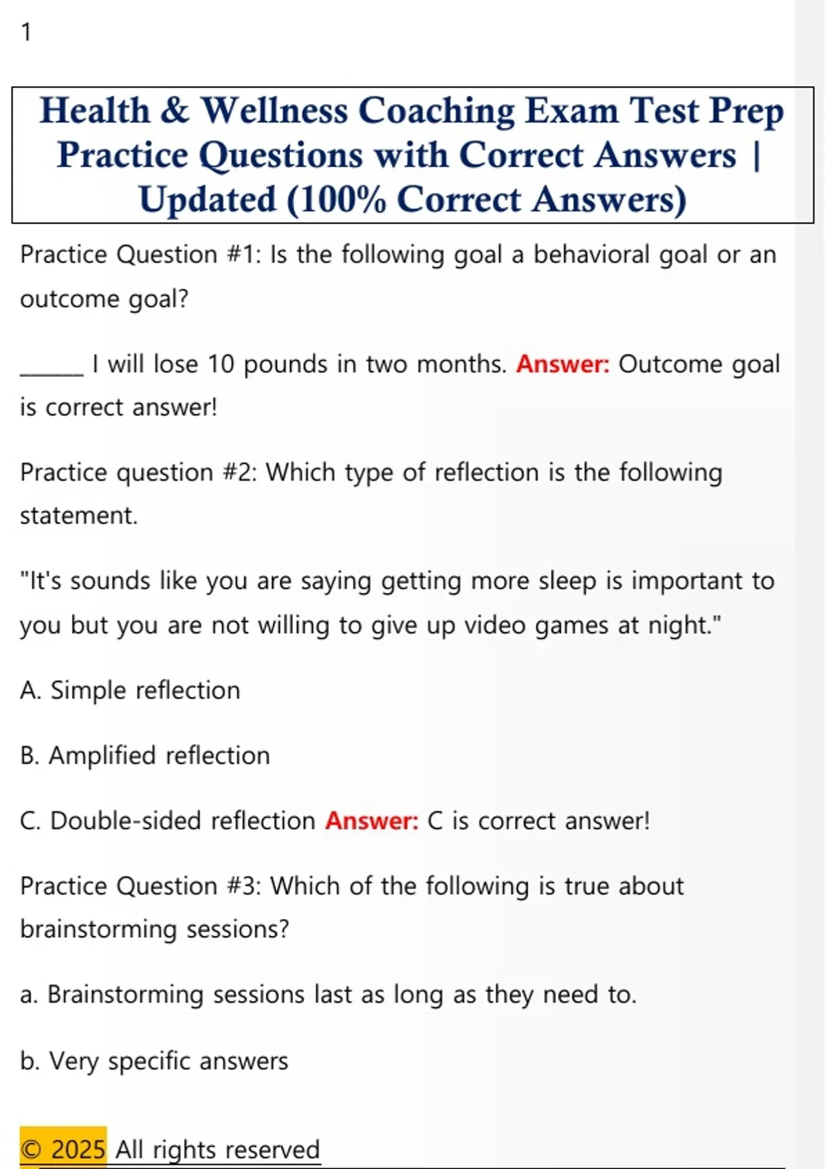 ______ I will lose 10 pounds in two months. Answer: Outcome goal
