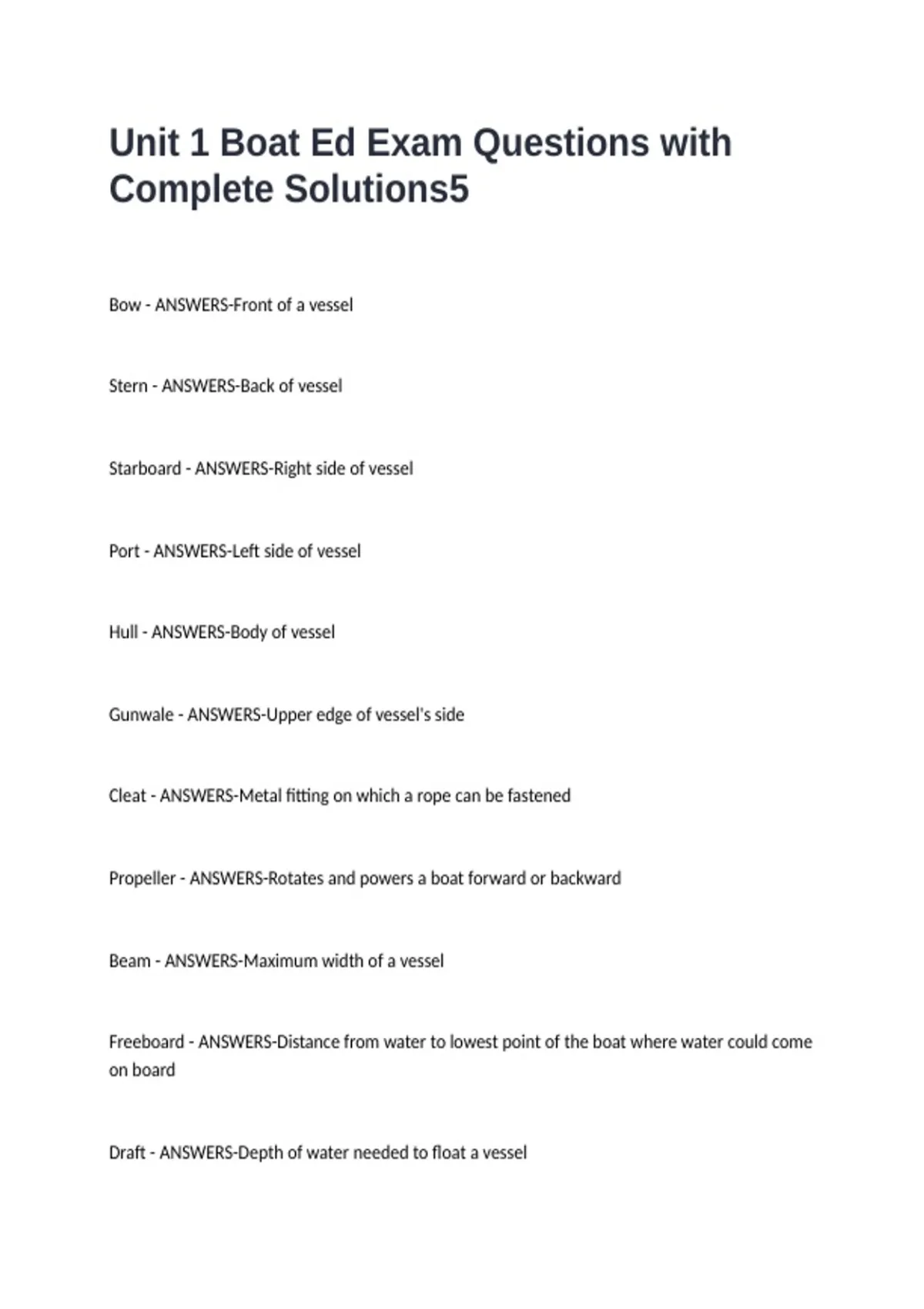 Unit 1 Boat Ed Exam Questions with Complete Solutions