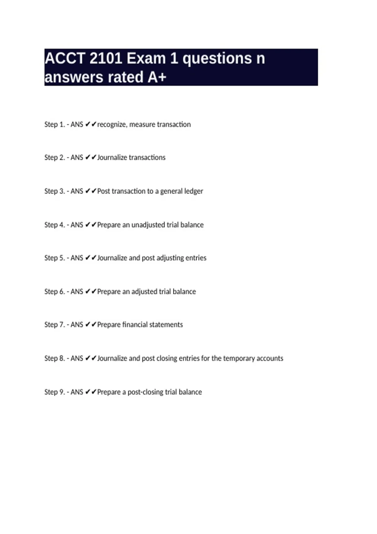 Step 1. - ANS ✔✔recognize, measure transaction